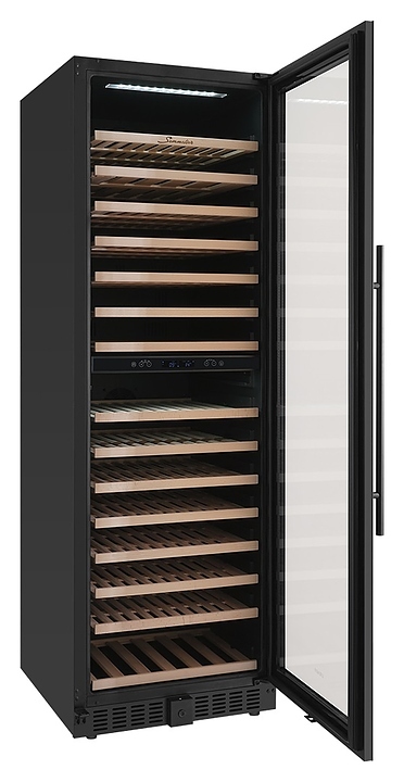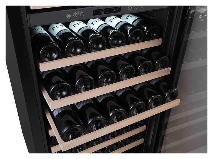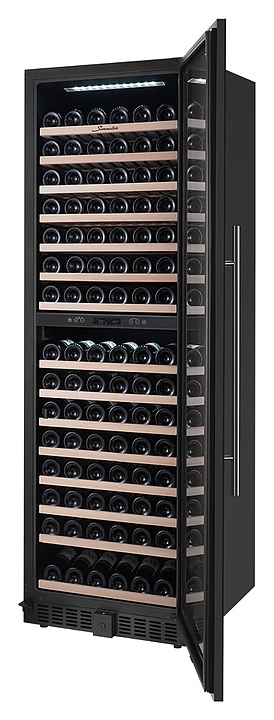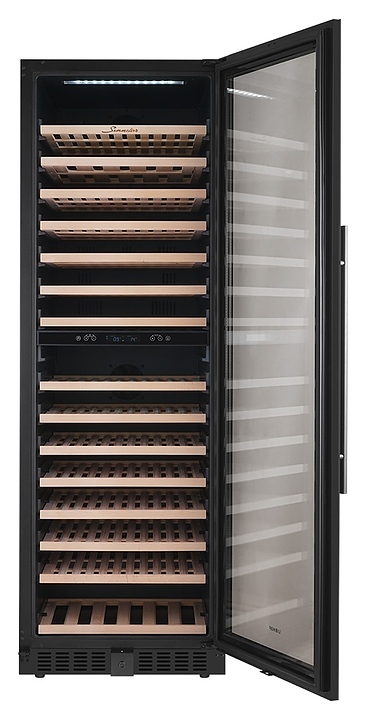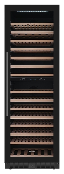 Винный шкаф Libhof Sommelier SMD-165 Silver предназначен для хранения при оптимальных условиях бутилированного вина различных сортов в барах, ресторанах, специализированных магазинах, подсобных складских помещениях, а также в домашних условиях. Модель оснащена холодильной камерой с 2 независимыми температурными зонами, запираемой на ключ распашной дверью на скрытых внутренних петлях, длинной вертикальной рукояткой, прозрачным дымчатым обзорным стеклом и внутренней сенсорной панелью управления с цифровым дисплеем. Корпус выполнен из металла с антикоррозийным покрытием черного цвета, рама двери, рукоятка и цокольная решетка – из металла с серебристой поверхностью, полки – из массива буковой древесины.
