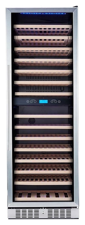 Винный шкаф Libhof Sommelier SOD-160 Silver предназначен для хранения при оптимальных условиях бутилированного вина различных сортов в барах, ресторанах, специализированных магазинах, подсобных складских помещениях, а также в домашних условиях. Модель оснащена холодильной камерой с 2 температурными зонами, 16 съемными полками, распашной дверью с внешними петлями, длинной рукояткой и прозрачным дымчатым обзорным стеклом с защитным напылением от ультрафиолетовых лучей. Корпус выполнен из металла, полки – из массива буковой древесины.