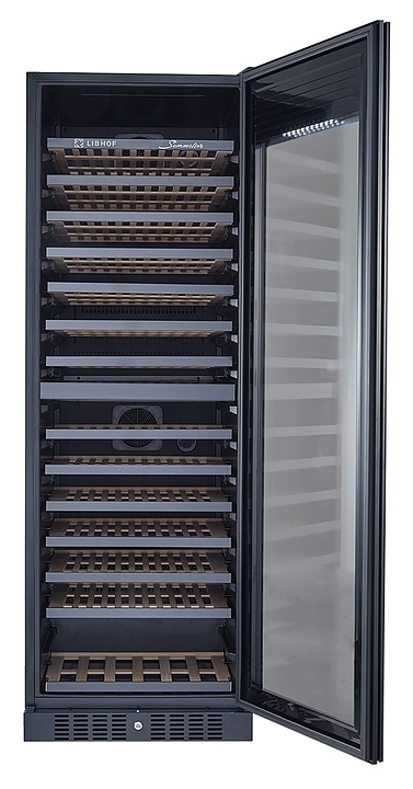 Встраиваемый винный шкаф Libhof Sommelier SRD-181 black предназначен для хранения при оптимальных условиях бутилированного вина различных сортов в барах, ресторанах, специализированных магазинах, подсобных складских помещениях, а также домашних условиях. Модель оснащена холодильной камерой с 2 независимыми температурными зонами, съемной цокольной вентиляционной решеткой, запираемой на ключ распашной дверью на внешних петлях со скрытыми ручками, прозрачным обзорным остеклением, внешней сенсорной панелью управления и цифровым дисплеем. Корпус выполнен из металла с антикоррозийным покрытием, полки - из массива буковой древесины с хромированной окантовкой фасада.
