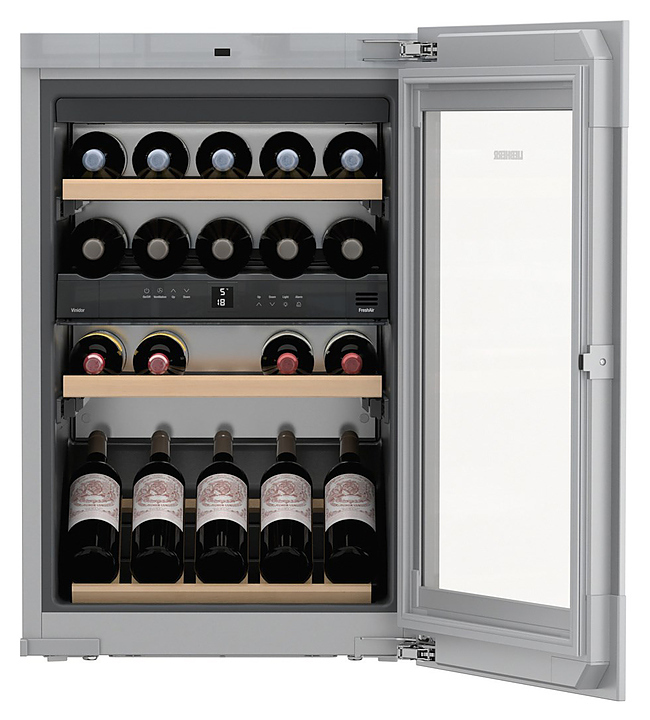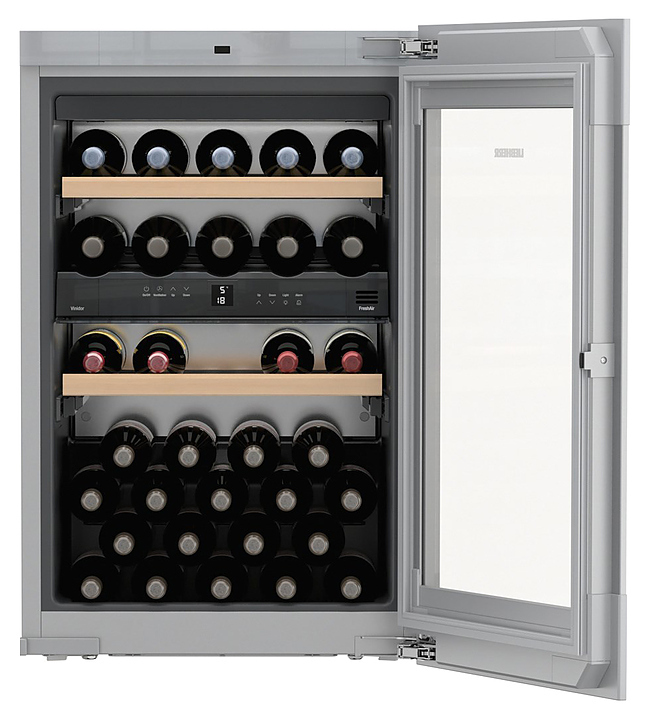 Винный шкаф Liebherr? EWTgw 1683 серии Vinidor предназначен для охлаждения и длительного хранения разливного вина в частных домах, квартирах, отелях и офисах. Модель оснащена сенсорным управлением, жидкокристаллическим дисплеем и цифровой индикацией температуры. Полки выполнены из дерева.