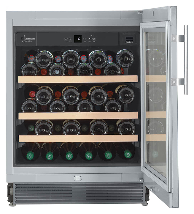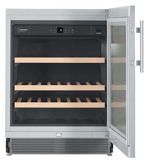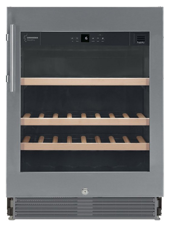 Винный шкаф Liebherr? UWKes 1752 серии GrandCru предназначен для охлаждения и длительного хранения разливного вина в частных домах, квартирах, отелях и офисах. Модель оснащена кнопочным управлением, дисплеем MagicEye и цифровой индикацией температуры . Внутренняя прокладка выполнена из серого полистирола, корпус - из нержавеющей стали, дверь - из стекла с УФ-покрытием с и рамой из нержавеющей стали, полки - из дерева акации.