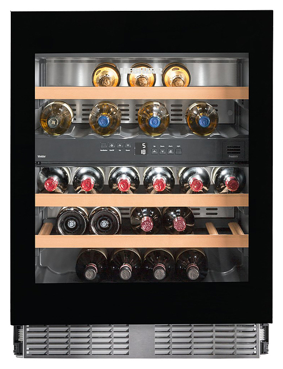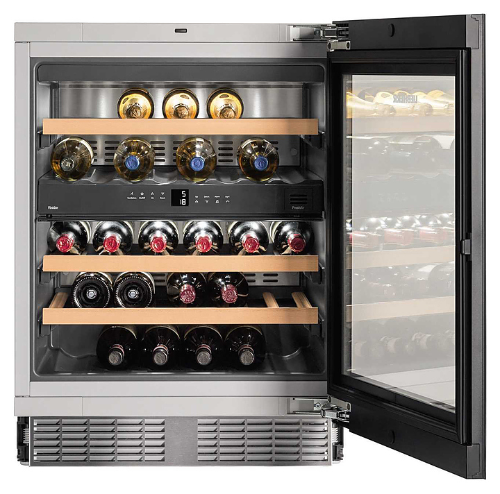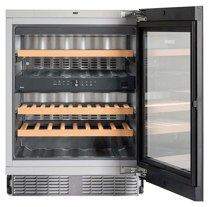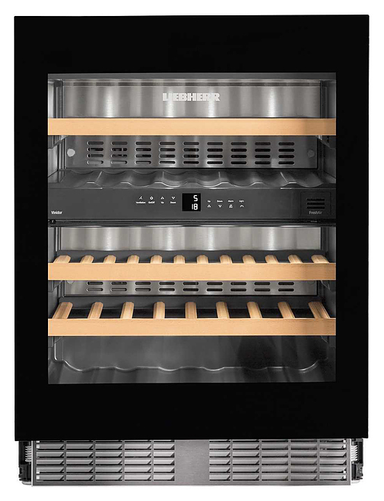 Винный шкаф Liebherr? UWTgb 1682 серии Vinidor предназначен для охлаждения и длительного хранения разливного вина в частных домах, квартирах, отелях и офисах. Модель оснащена жидкокристаллическим дисплеем и цифровой индикацией температуры. Дверь выполнена из стекла, полки - из дерева.