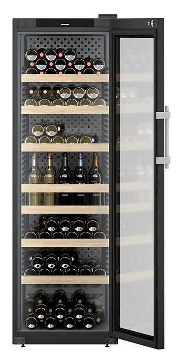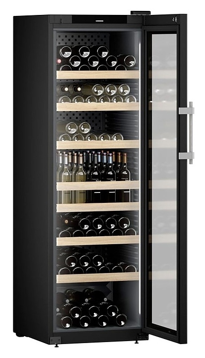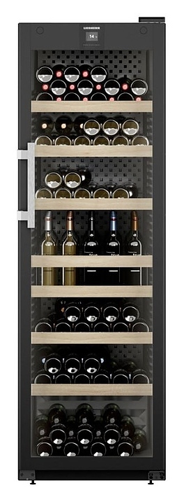 Винный шкаф Liebherr? WFbli 5241 серии Perfection предназначен для охлаждения и длительного хранения разливного вина в частных домах, квартирах, отелях и офисах. Модель оснащена сенсорной панелью управления Touch & Swipe, 6 выдвижными полками, корзиной для вертикального хранения бутылок и LED освещением. Боковые и задняя стенки выполнены из стали, дверь - из изоляционного стекла, внутренний корпус - из пластика, ручка - из алюминия, полки - из металла с деревянным фронтом.