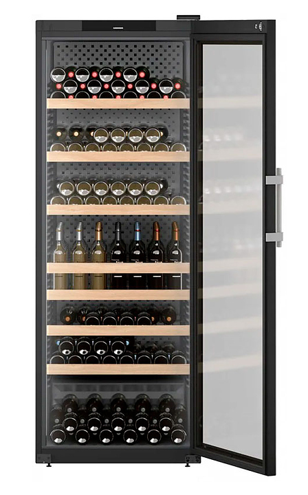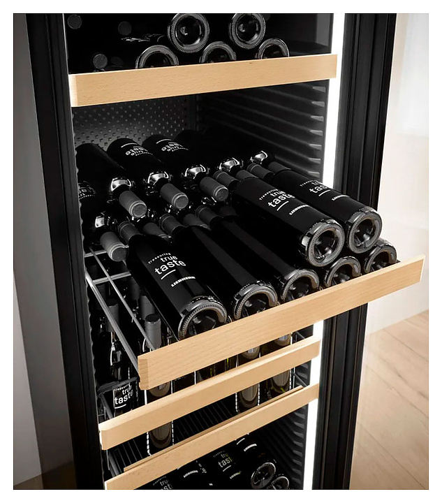 Винный шкаф Liebherr? WFbli 7741 серии Perfection предназначен для охлаждения и длительного хранения разливного вина в частных домах, квартирах, отелях и офисах. Модель оснащена сенсорной панелью управления Touch & Swipe, 6 выдвижными полками, корзиной для вертикального хранения бутылок и LED освещением. Боковые и задняя стенки выполнены из стали, дверь - из изоляционного стекла, внутренний корпус - из пластика, ручка - из алюминия, полки - из металла с деревянным фронтом.