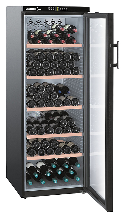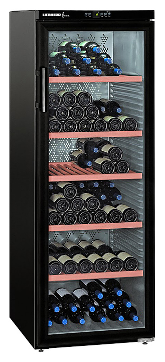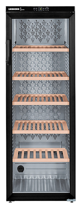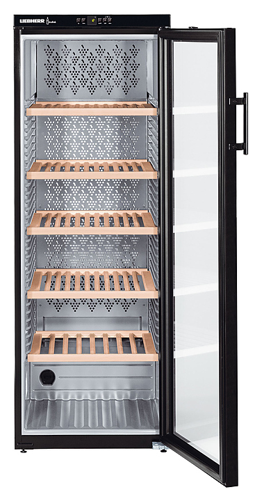 Винный шкаф Liebherr? WKb 4212 серии Vinothek предназначен для охлаждения и длительного хранения разливного вина в частных домах, квартирах, отелях и офисах. Модель оснащена кнопочным управлением, жидкокристаллическим дисплеем MagicEye и цифровой индикацией температуры. Внутренняя прокладка выполнена из серого полистирола, корпус - из нержавеющей стали, дверь - из стекла с УФ-покрытием, полки - из дерева акации.