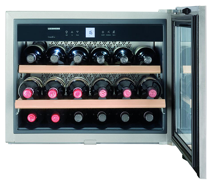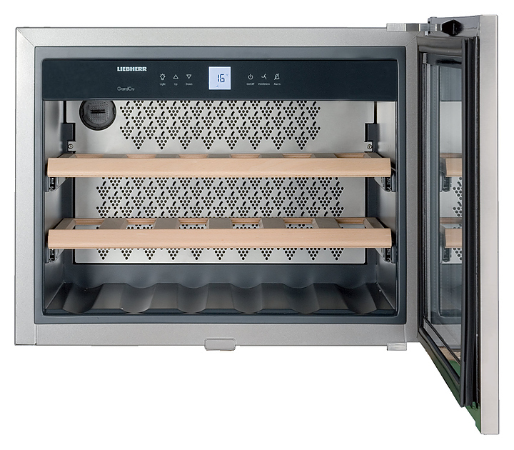 Винный шкаф Liebherr? WKEes 553 серии GrandCru предназначен для охлаждения и длительного хранения разливного вина в частных домах, квартирах, отелях и офисах. Модель оснащена сенсорным управлением, жидкокристаллическим дисплеем и цифровой индикацией температуры. Внутренняя прокладка выполнена из серого полистирола, корпус - из нержавеющей стали, дверь - из стекла с с рамой из нержавеющей стали, полки - из дерева акации.