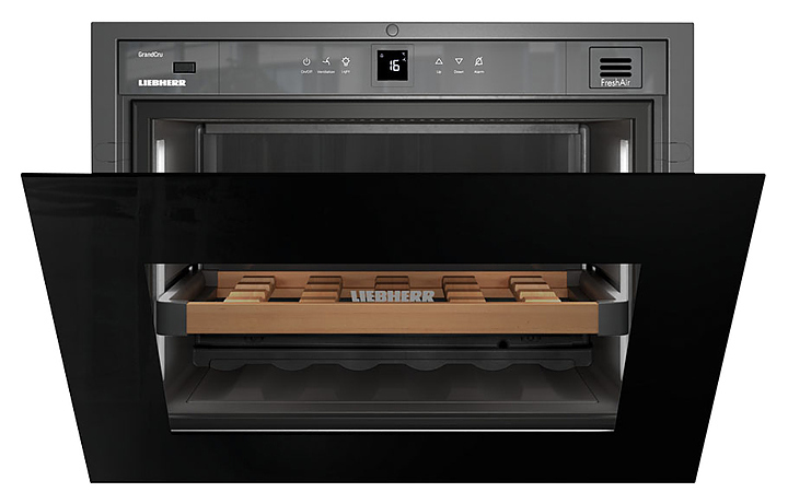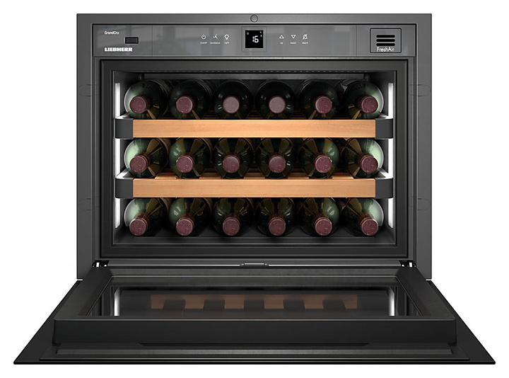 Винный шкаф Liebherr? WKEgb 582 серии GrandCru предназначен для охлаждения и длительного хранения разливного вина в частных домах, квартирах, отелях и офисах. Модель оснащена сенсорным управлением, жидкокристаллическим дисплеем и цифровой индикацией температуры. Дверь выполнена из стекла, полки - из натурального дерева.