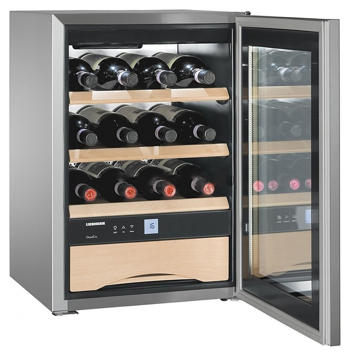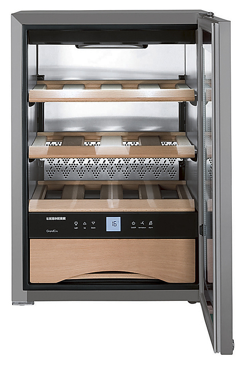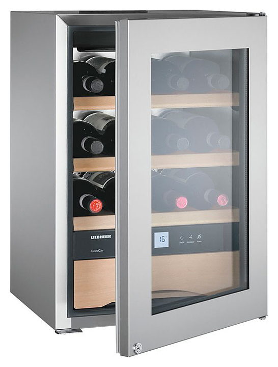Винный шкаф Liebherr? WKEes 653 серии GrandCru предназначен для охлаждения и длительного хранения разливного вина в частных домах, квартирах, отелях и офисах. Модель оснащена сенсорным управлением и жидкокристаллическим дисплеем. Внутренняя прокладка выполнена из серого полистирола, корпус - из нержавеющей стали, дверь - из стекла с с рамой из нержавеющей стали, полки - из дерева акации.