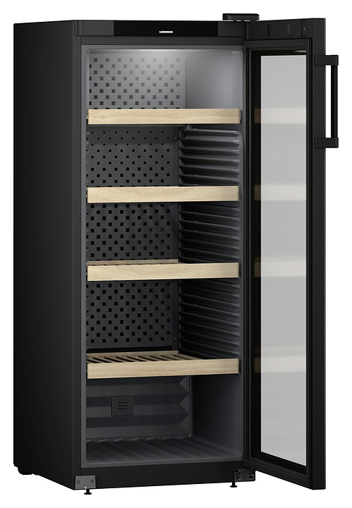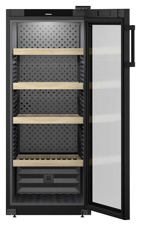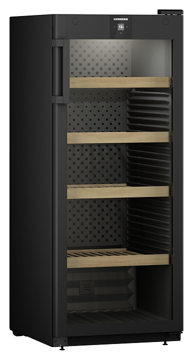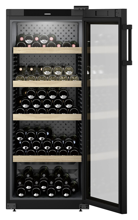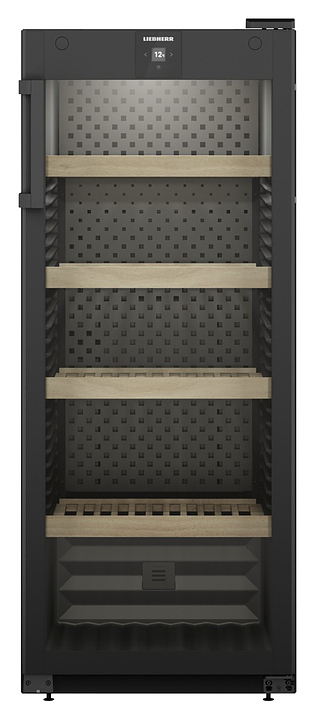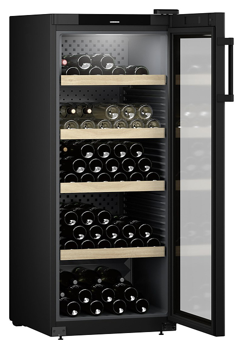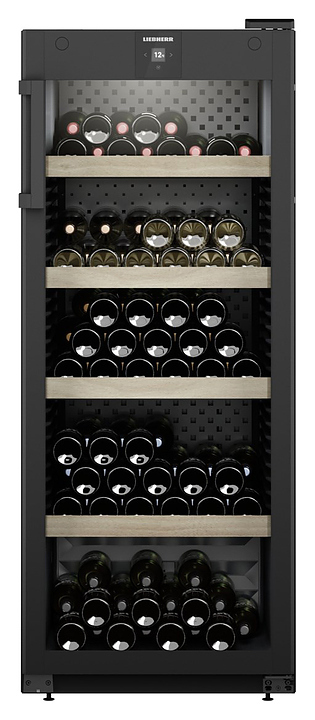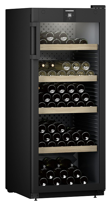 Винный шкаф Liebherr? WPbl 4601-20 001 предназначен для охлаждения и длительного хранения разливного вина в частных домах, квартирах, отелях и офисах. Модель оснащена сенсорным ЖК-дисплеем, цифровой индикацией температуры, светодиодным потолочным освещением и 5 выдвижными полками. Боковые и задняя стенка выполнены из стали, дверь - из изоляционного стекла, полки - из дерева, ручка- из пластика.