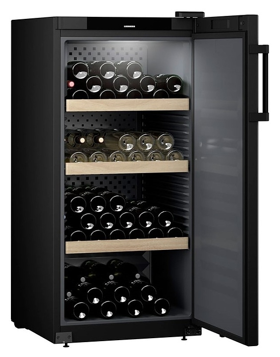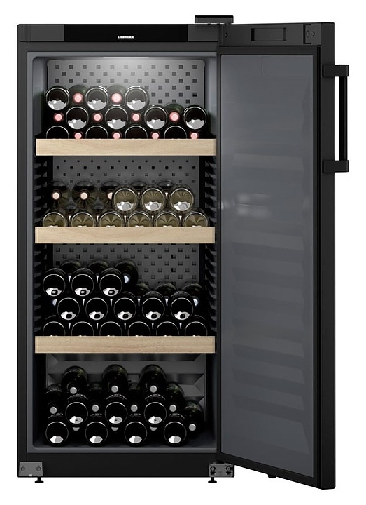 Винный шкаф Liebherr? WSbl 4201 серии Pure предназначен для охлаждения и длительного хранения разливного вина в частных домах, квартирах, отелях и офисах. Модель оснащена сенсорной панелью управления, 4 полками и LED освещением. Боковые и задняя стенки выполнены из стали, дверь - из металла и пластика, ручка - из пластика, полки - из дерева.
