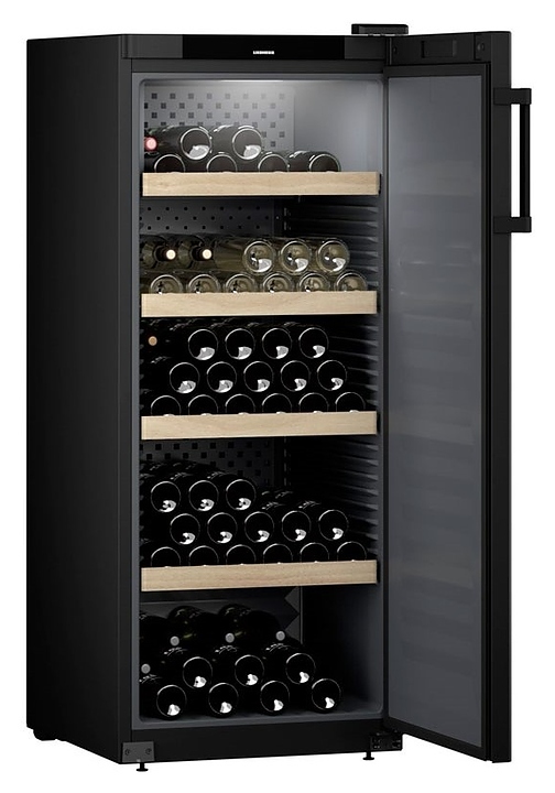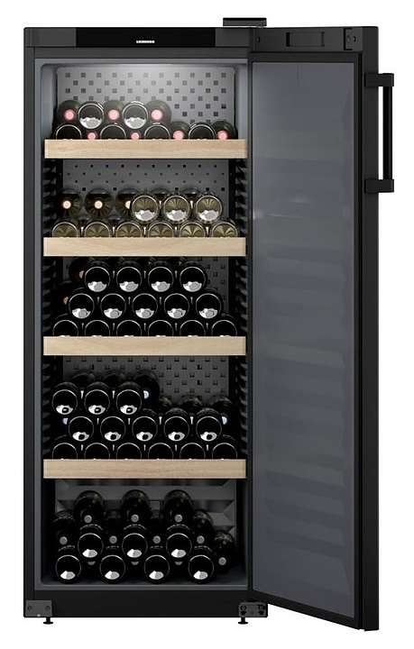 Винный шкаф Liebherr? WSbl 4601 серии Pure предназначен для охлаждения и длительного хранения разливного вина в частных домах, квартирах, отелях и офисах. Модель оснащена сенсорной панелью управления, 5 полками и LED освещением. Боковые и задняя стенки выполнены из стали, дверь - из металла и пластика, ручка - из пластика, полки - из дерева.
