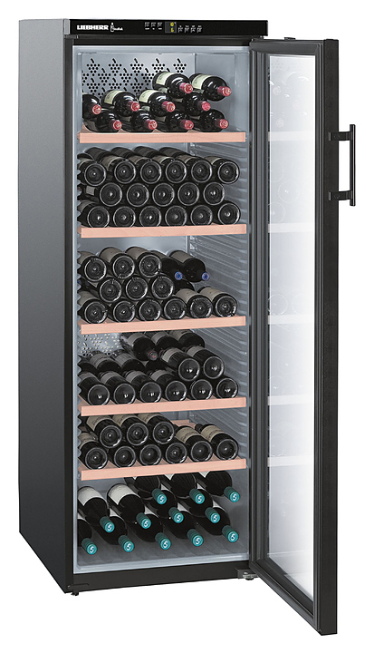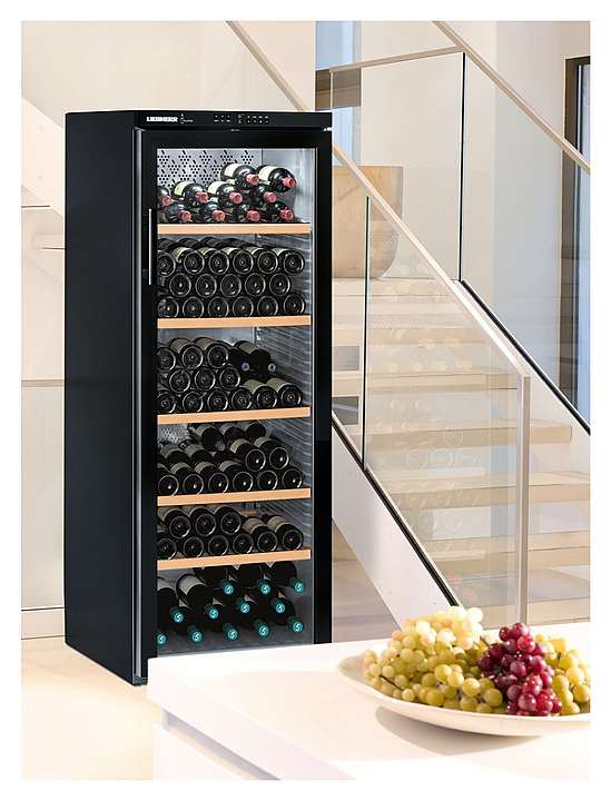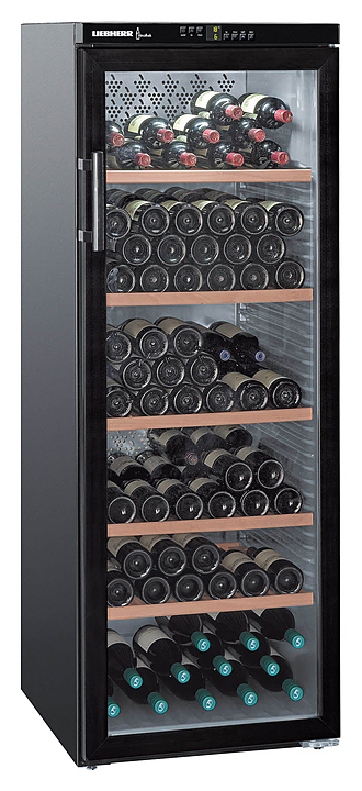 Винный шкаф Liebherr? WTb 4212 серии Vinothek предназначен для охлаждения и длительного хранения разливного вина в частных домах, квартирах, отелях и офисах. Модель оснащена кнопочным управлением, жидкокристаллическим дисплеем MagicEye и цифровой индикацией температуры. Внутренняя прокладка выполнена из серого полистирола, корпус - из нержавеющей стали, дверь - из стекла с УФ-покрытием, полки - из дерева акации.