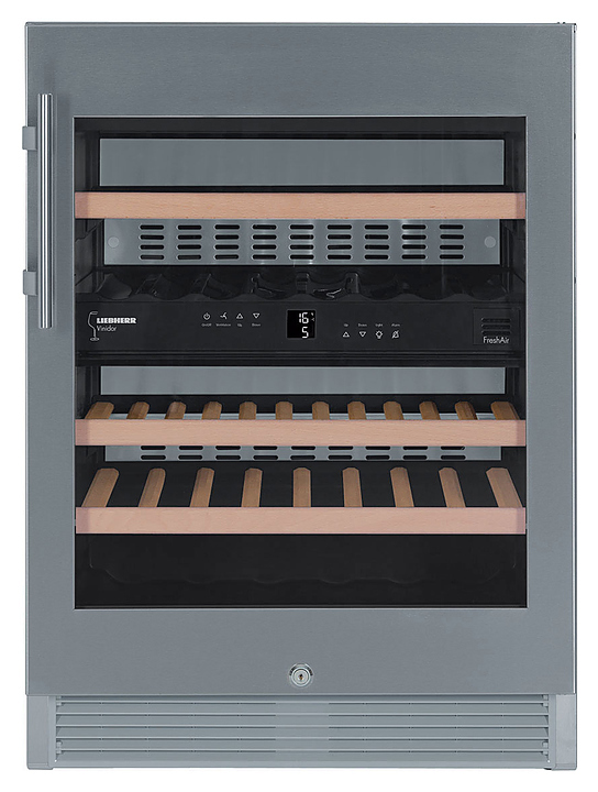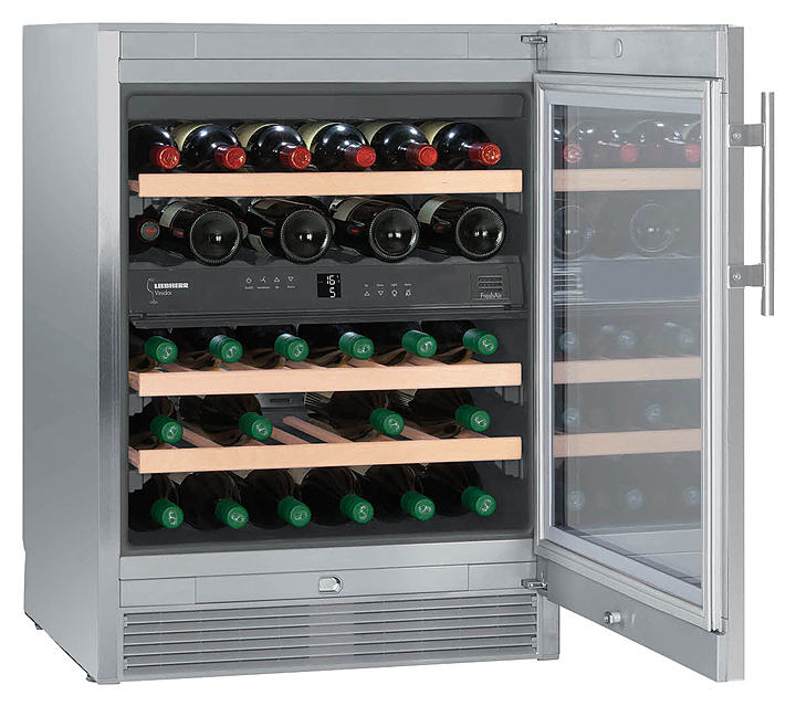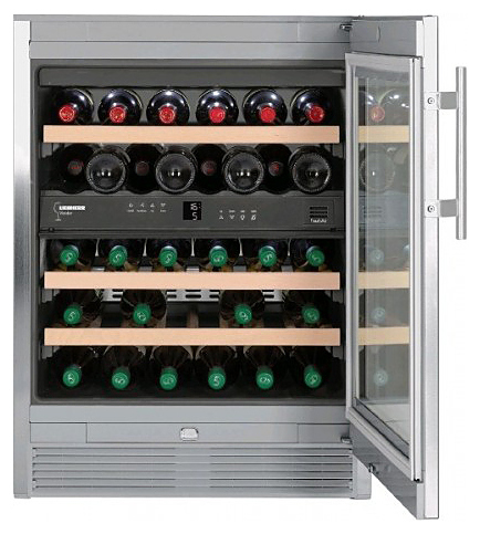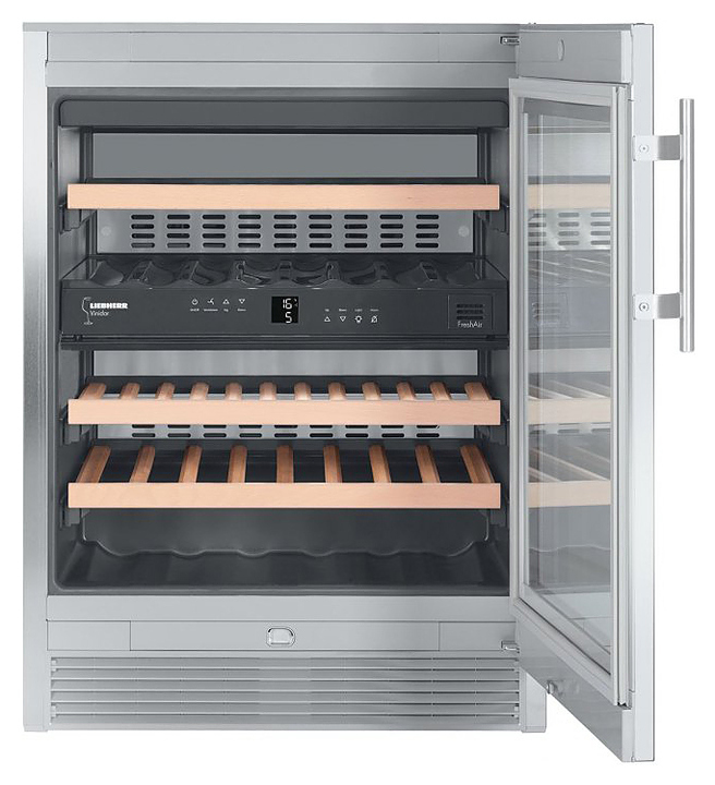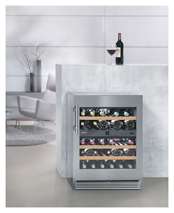 Винный шкаф Liebherr? WTes 1672 серии Vinidor предназначен для охлаждения и длительного хранения разливного вина в частных домах, квартирах, отелях и офисах. Модель оснащена сенсорным управлением и жидкокристаллическим дисплеем с цифровой индикацией температуры. Внутренняя прокладка выполнена из серого полистирола, корпус - из нержавеющей стали, дверь - из стекла с УФ-покрытием с и рамой из нержавеющей стали, полки - из дерева акации.