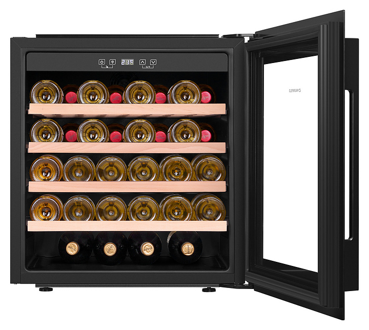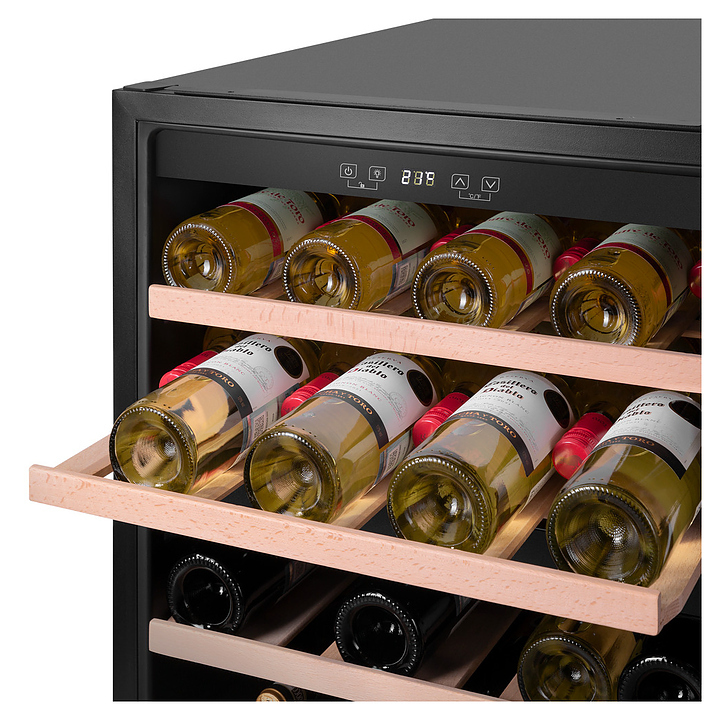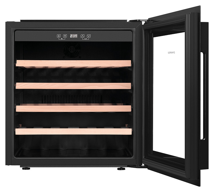 Винный шкаф Maunfeld MBWC-92S36 предназначен для хранения при оптимальных условиях и предпродажной демонстрации бутилированного вина различных сортов в барах, ресторанах, специализированных магазинах, подсобных складских помещениях, а также домашних условиях. Модель оснащена холодильной камерой с правосторонней распашной дверью, уплощенной вертикальной рукояткой, расположенной внутри камеры панелью управления с функциональными сенсорными клавишами и светодиодным дисплеем с белой подсветкой индикации. Корпус выполнен из стали с антикоррозийным покрытием черного цвета, дверь с полным фронтальным остеклением без винтового крепежа из прозрачного стекла с дымчатой тонировкой, внутренняя облицовка камеры черного цвета, полки – из массива буковой древесины.