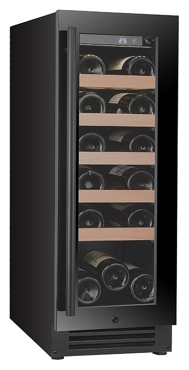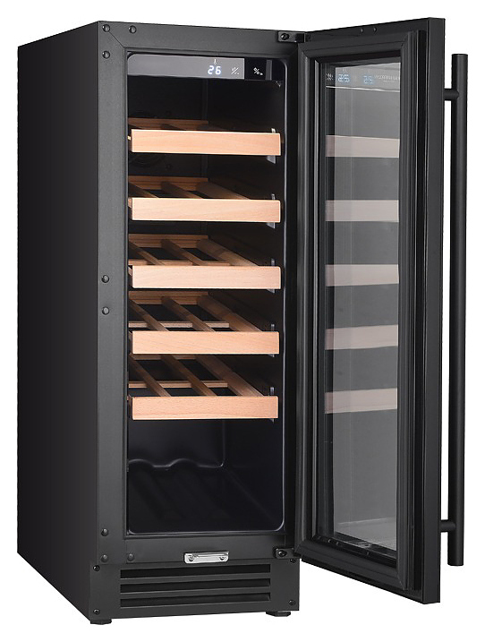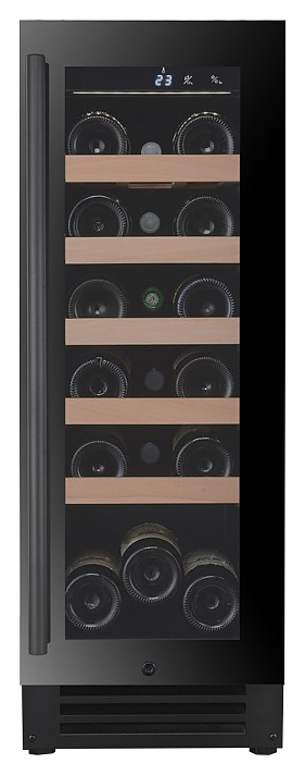 Винный шкаф MC Wine W20B предназначен для кратковременного хранения вина при определенном уровне влажности и температуры в ресторанах, специализированных магазинах, отелях, подсобных складских помещениях, в частных домах или квартирах и подготовки вина к подаче на стол. Модель оснащена сенсорным цифровым дисплеем с циферблатом и подсветкой голубого цвета, светодиодным индикатором температуры, белой светодиодной лентой и черной трубчатой ручкой. Дверь выполнена из двухслойного низкоэмиссионного стекла, рамка двери - из черного стекла, полки - из массива бука.