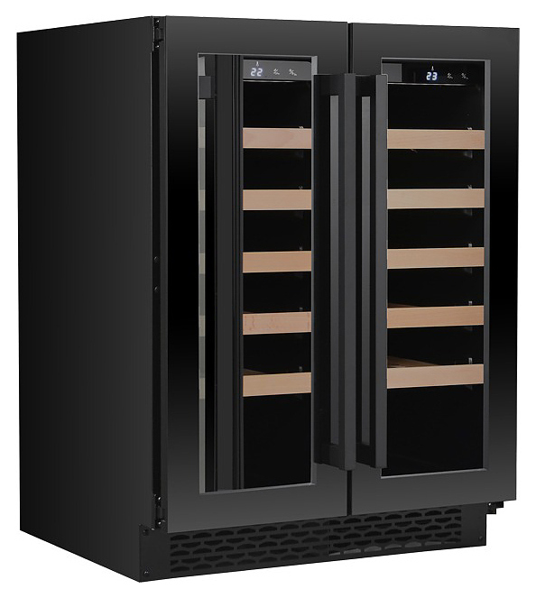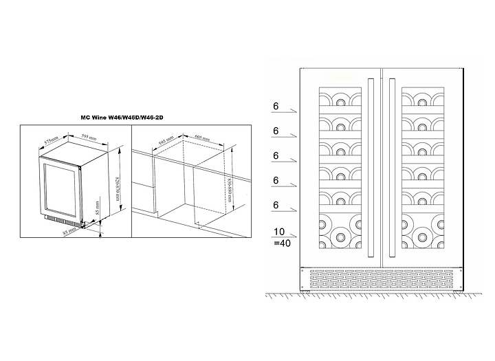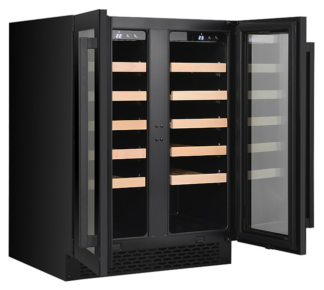 Винный шкаф MC Wine W46-2DB предназначен для кратковременного хранения вина при определенном уровне влажности и температуры в ресторанах, специализированных магазинах, отелях, подсобных складских помещениях, в частных домах или квартирах и подготовки вина к подаче на стол. Модель оснащена 2 дверями, сенсорным цифровым дисплеем и циферблатом, белой светодиодной подсветкой, светодиодным индикатором температуры, регулируемыми по высоте ножками и черной трубчатой ручкой. Двери выполнены из двухслойного низкоэмиссионного стекла с УФ-защитой, бесшовная рама и ручка - из нержавеющей стали, полки - из бука.