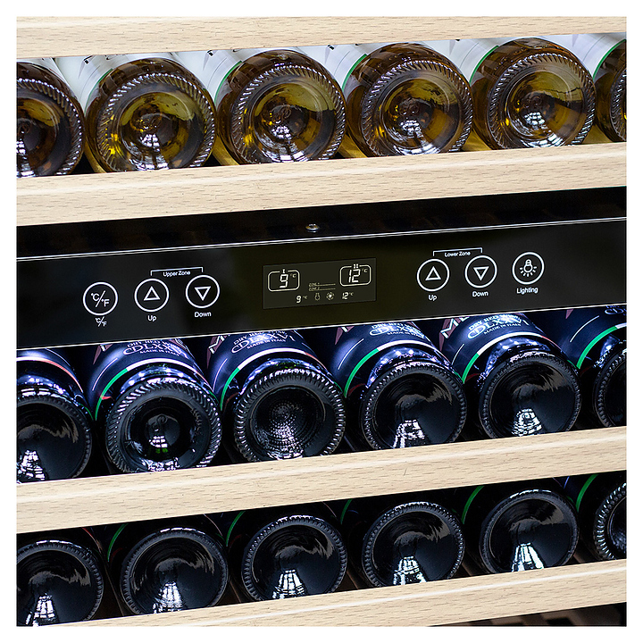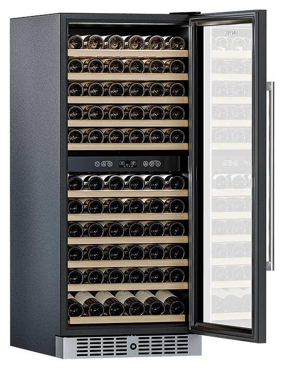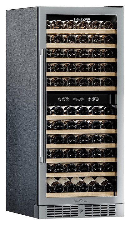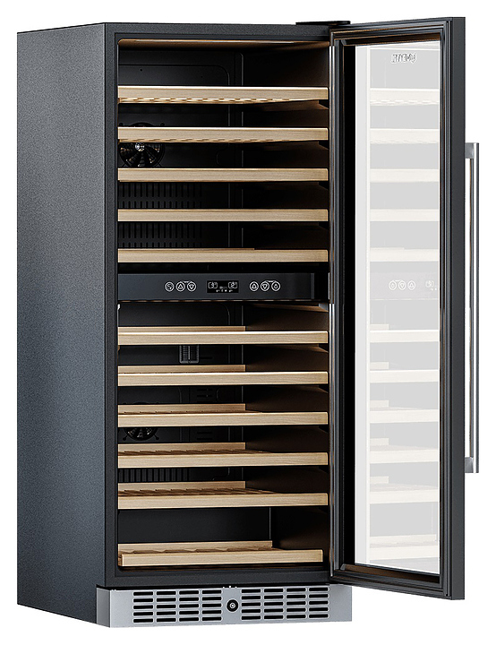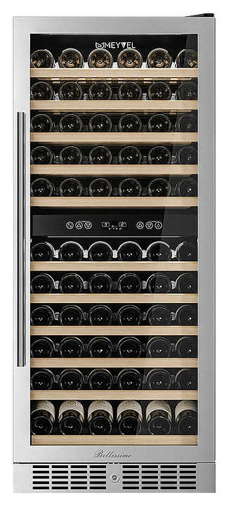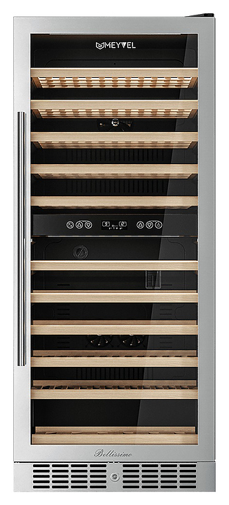 Винный шкаф MEYVEL MV116-KST2 предназначен для демонстрации, хранения и создания оптимальных условий для сохранения всех вкусовых свойств вина в бутылках на предприятиях общественного питания, торговли, в барах, ресторанах, специализированных магазинах, частных домах или квартирах. Модель оснащена сенсорной панелью управления, 2 электронными термостатами и внутренней светодиодной подсветкой. Корпус и ручка выполнены из стали, дверь - из стальной рамы и тройного стекла с защитой от ультрафиолетовых лучей, полки - из массива бука.