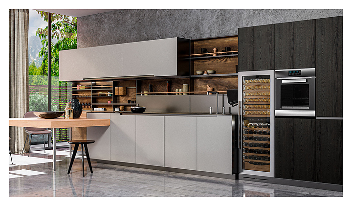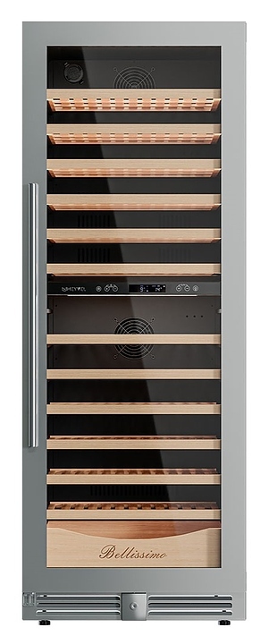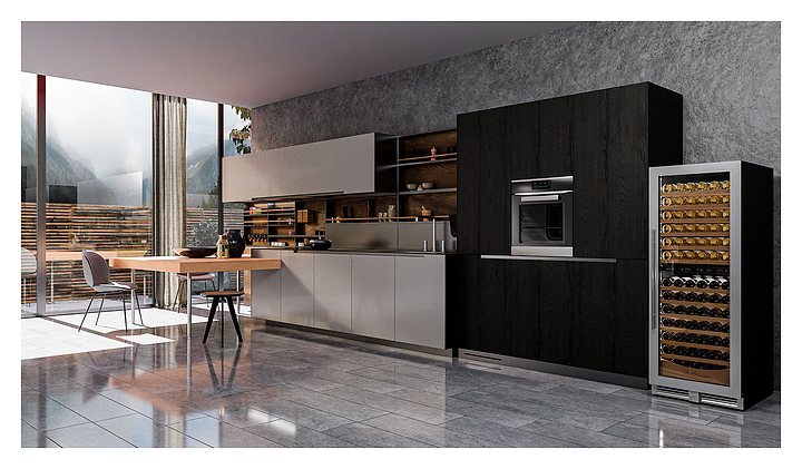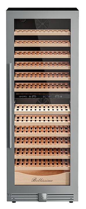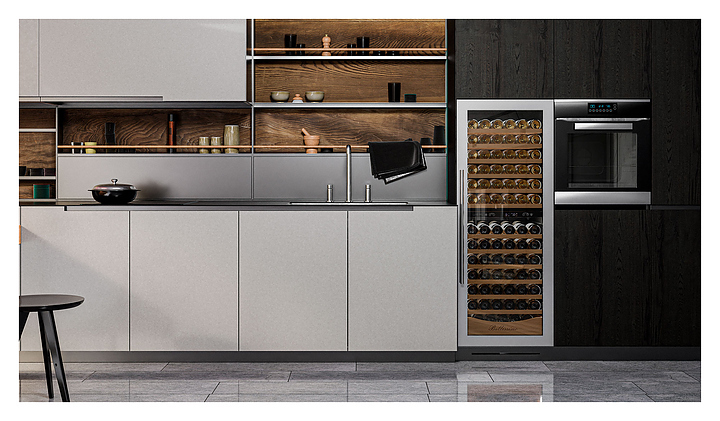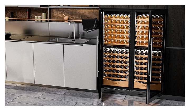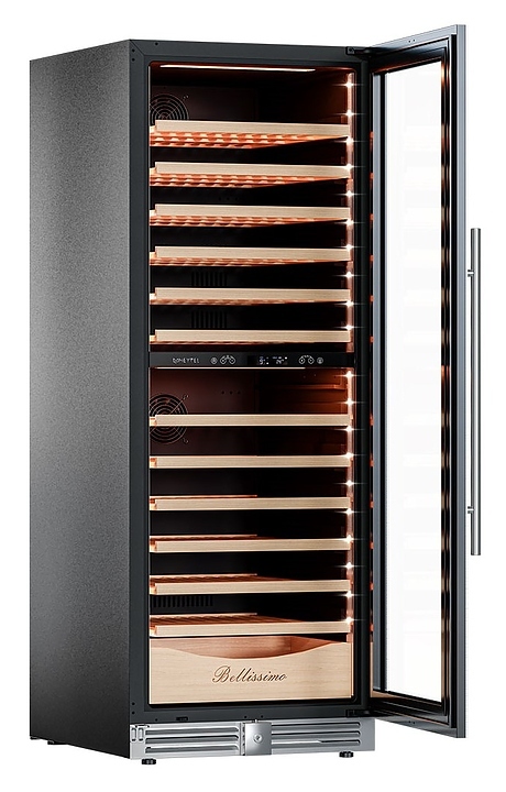 Винный шкаф MEYVEL MV141PRO-KST2 предназначен для демонстрации, хранения и создания оптимальных условий для сохранения всех вкусовых свойств вина в бутылках на предприятиях общественного питания, торговли, в барах, ресторанах, специализированных магазинах, частных домах или квартирах. Модель оснащена сенсорной панелью управления, электронным термостатом, понорамной светодиодной подсветкой, замком, угольным фильтром, 12 выкатными полками и регулируемыми по высоте ножками. Корпус выполнен из окрашенной в черный цвет стали, дверь - из тройного стеклопакета с УФ защитой, полки - из массива бука.