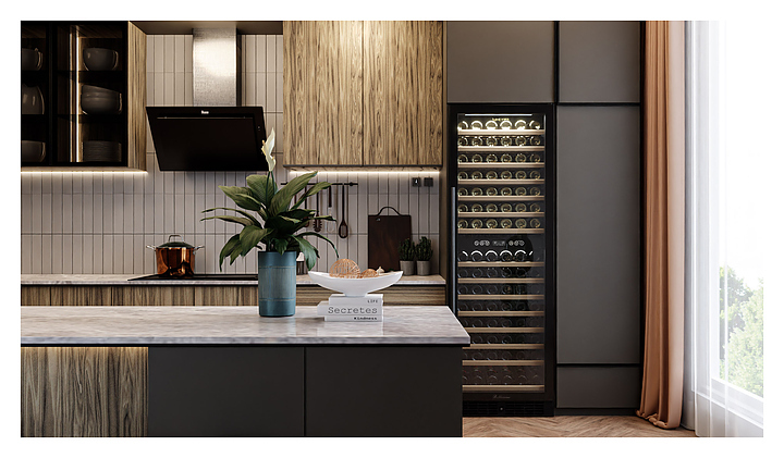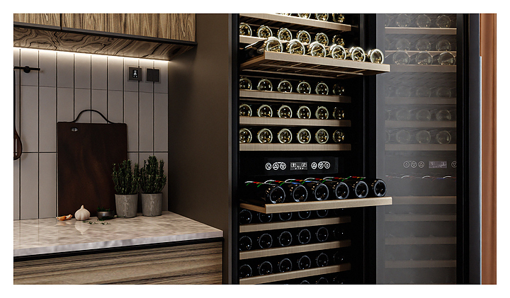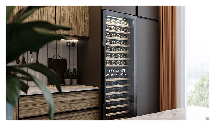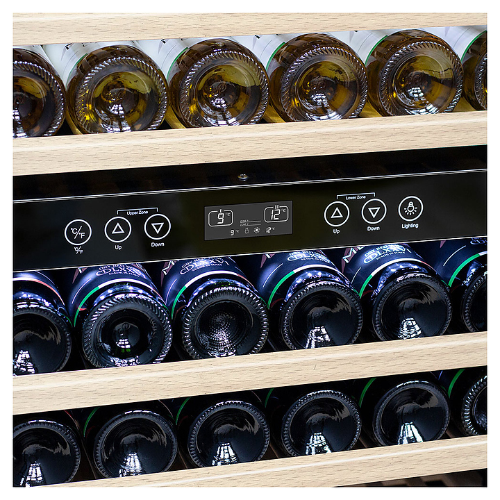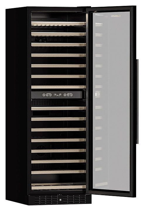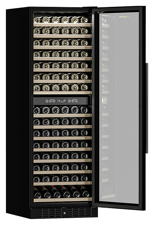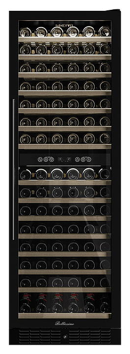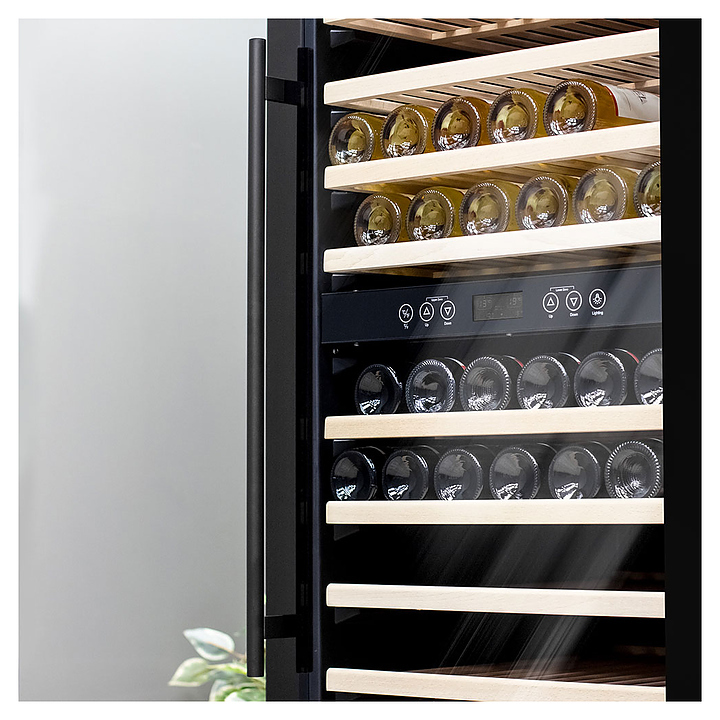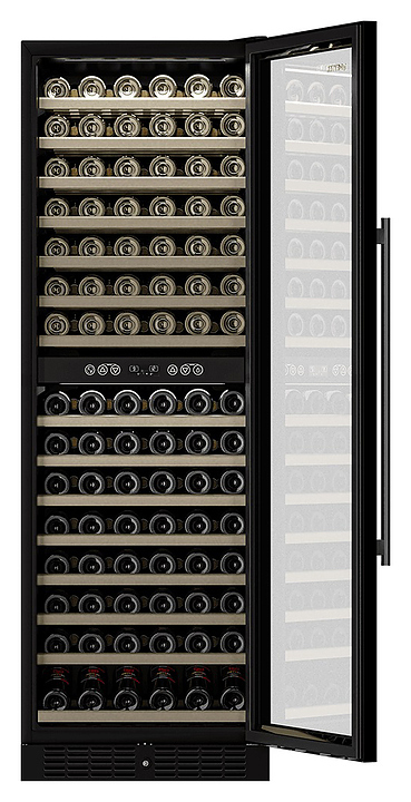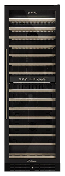 Винный шкаф MEYVEL MV160-KBT2 предназначен для демонстрации, хранения и создания оптимальных условий для сохранения всех вкусовых свойств вина в бутылках на предприятиях общественного питания, торговли, в барах, ресторанах, специализированных магазинах, частных домах или квартирах. Модель оснащена сенсорной панелью управления, 2 электронными термостатами и внутренней светодиодной подсветкой. Корпус и дверная ручка выполнены из окрашенной в черный цвет стали, дверь - из тройного стекла с УФ защитой с черной рамкой, полки - из массива бука.