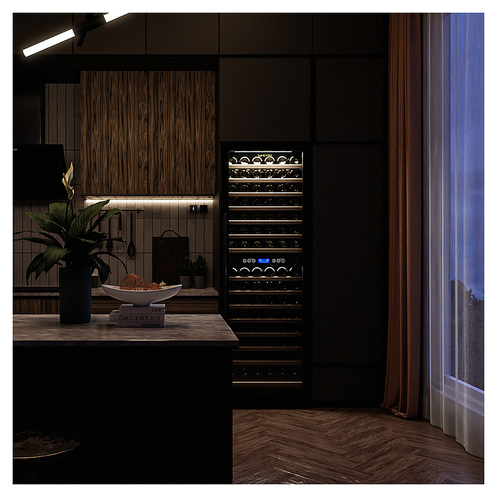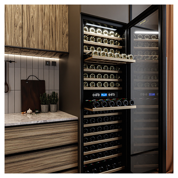Винный шкаф MEYVEL MV160-KST2 предназначен для демонстрации, хранения и создания оптимальных условий для сохранения всех вкусовых свойств вина в бутылках на предприятиях общественного питания, торговли, в барах, ресторанах, специализированных магазинах, частных домах или квартирах. Модель оснащена сенсорной панелью управления, 2 электронными термостатами и внутренней светодиодной подсветкой. Корпус выполнен из окрашенной в черный цвет стали, дверь - из тройного стекла с УФ-фильтром, рамка двери - из бесшовной нержавеющей стали, полки - из массива бука.