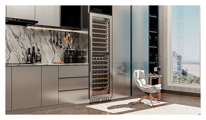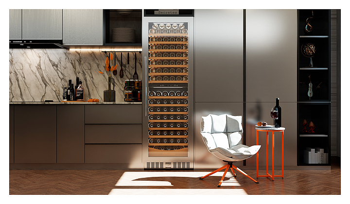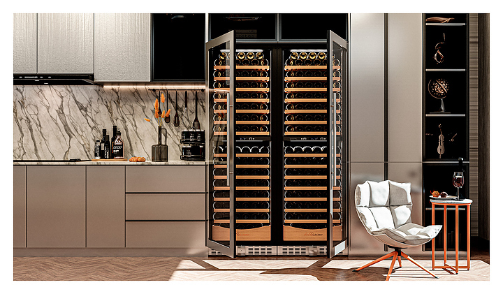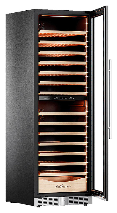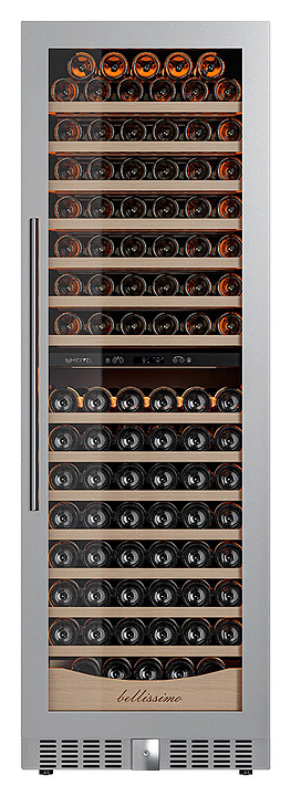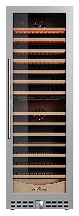 Винный шкаф MEYVEL MV163PRO-KST2 предназначен для демонстрации, хранения и создания оптимальных условий для сохранения всех вкусовых свойств вина в бутылках на предприятиях общественного питания, торговли, в барах, ресторанах, специализированных магазинах, частных домах или квартирах. Модель оснащена сенсорной панелью управления, 2 электронными термостатами и внутренней светодиодной подсветкой. Корпус выполнен из стали, дверь - из стальной рамы и тройного стекла с защитой от ультрафиолетовых лучей, полки - из массива бука.