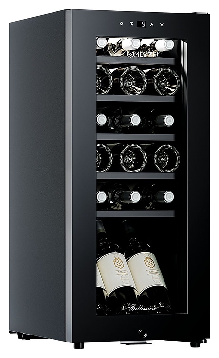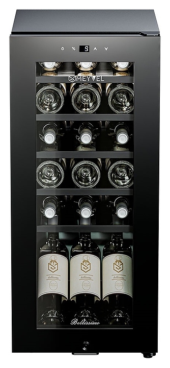 Винный шкаф MEYVEL MV18-KBF1 предназначен для хранения при оптимальных условиях бутилированного вина различных сортов в барах, ресторанах, специализированных магазинах, подсобных складских помещениях, гостиницах, а также домашних условиях. Модель оснащена монотемпературной холодильной камерой, распашной дверью на внешних петлях, прозрачным обзорным остеклением, кабелем питания с вилкой, внешней сенсорной панелью управления и цифровым светодиодным дисплеем с белой подсветкой индикации. Корпус выполнен из стали с черным покрытием, полки – из массива древесины с металлической окантовкой фронта.