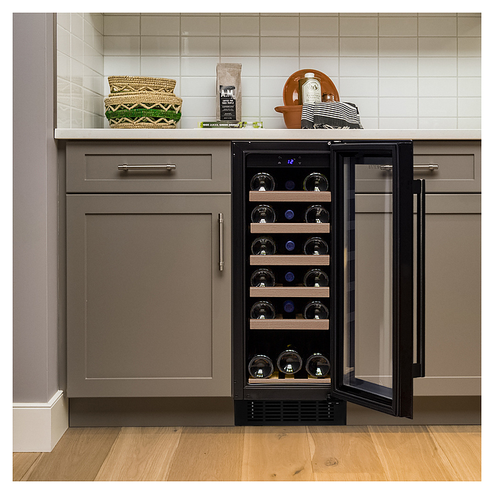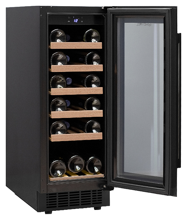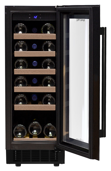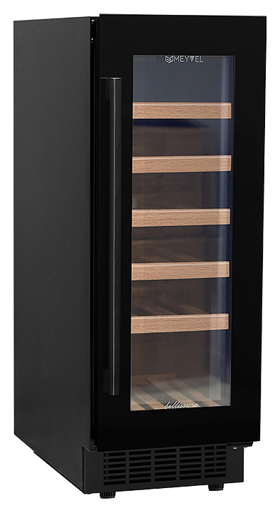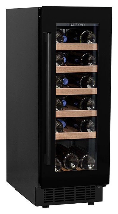 Винный шкаф MEYVEL MV18-KBT1 предназначен для демонстрации, хранения и создания оптимальных условий для сохранения всех вкусовых свойств вина в бутылках на предприятиях общественного питания, торговли, в барах, ресторанах, специализированных магазинах, частных домах или квартирах. Модель оснащена сенсорной панелью управления, электронным термостатом и внутренней светодиодной подсветкой. Корпус и дверная ручка выполнены из окрашенной в черный цвет стали, дверь - из двойного стекла с УФ защитой с черной рамкой, полки - из массива бука.