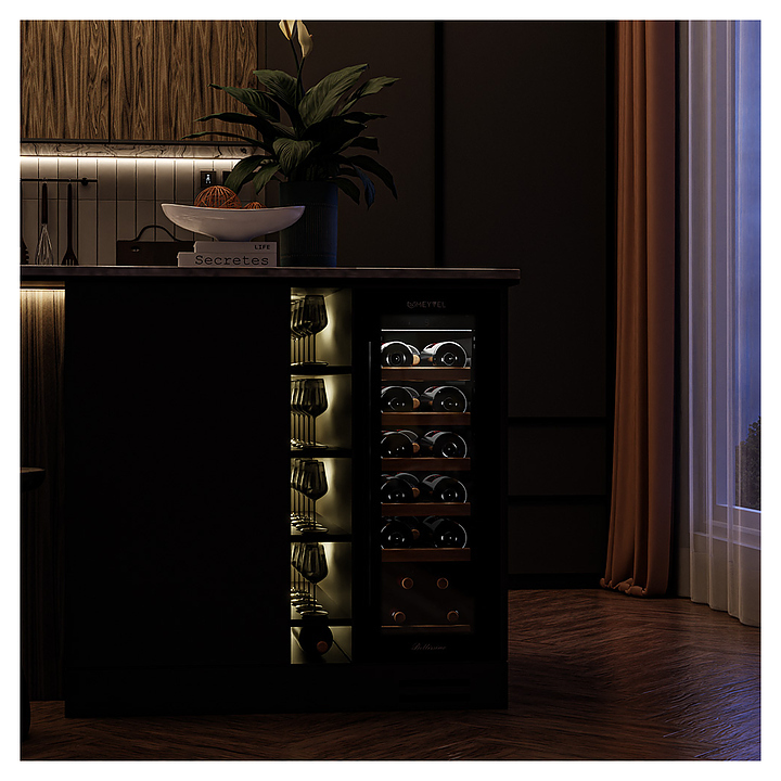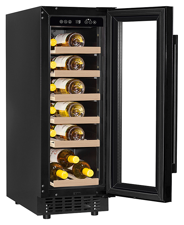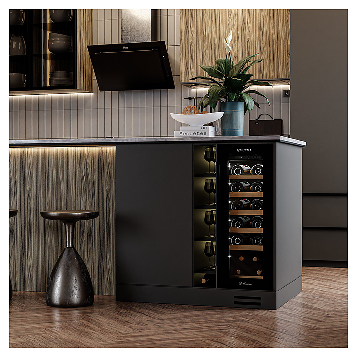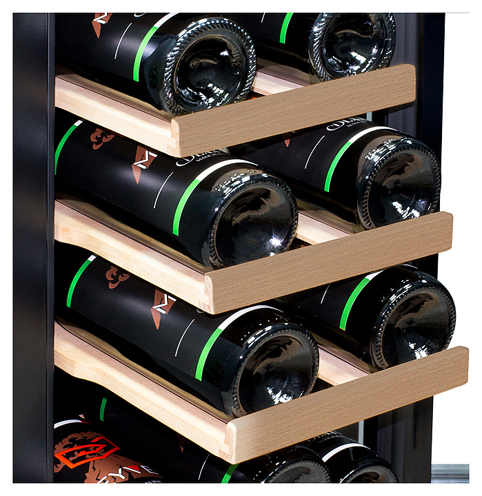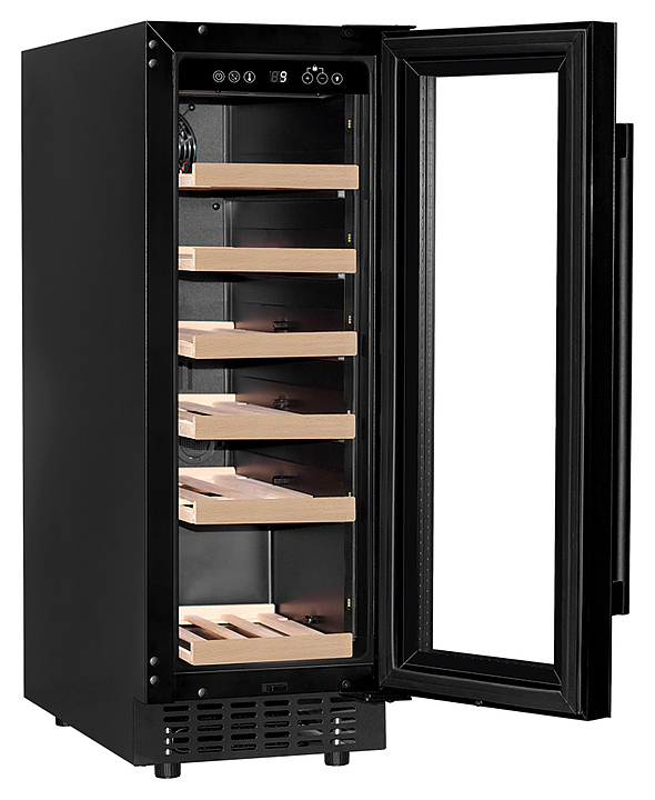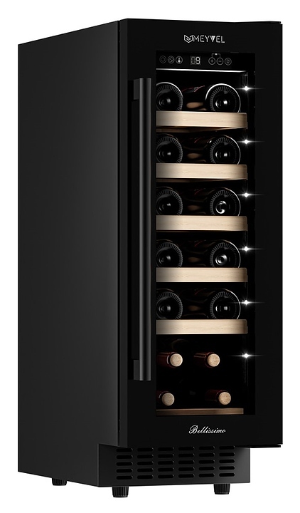 Винный шкаф MEYVEL MV19-KBT1 предназначен для демонстрации, хранения и создания оптимальных условий для сохранения всех вкусовых свойств вина в бутылках на предприятиях общественного питания, торговли, в барах, ресторанах, специализированных магазинах, частных домах или квартирах. Модель оснащена сенсорной панелью управления, электронным термостатом и внутренней светодиодной подсветкой. Корпус и дверная ручка выполнены из окрашенной в черный цвет стали, дверь - из тройного стекла с УФ защитой с черной рамкой, полки - из массива бука.