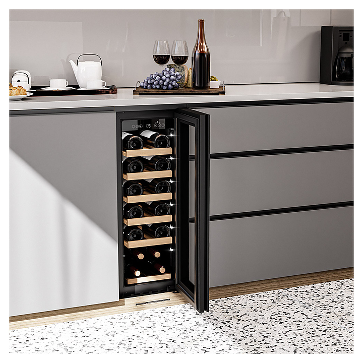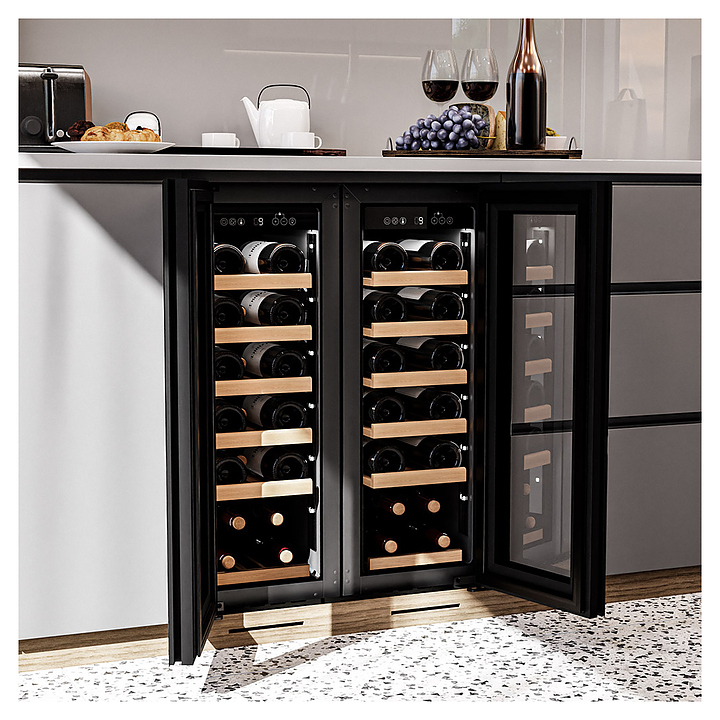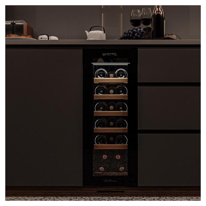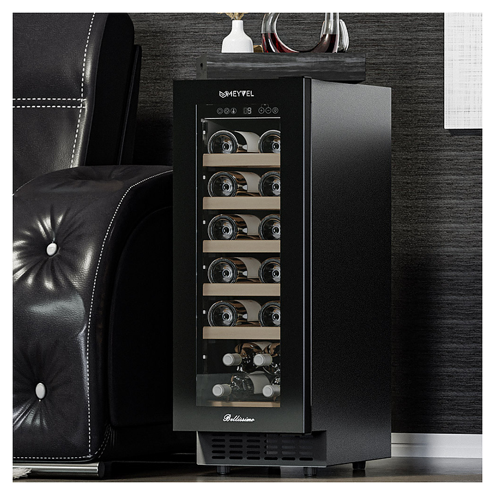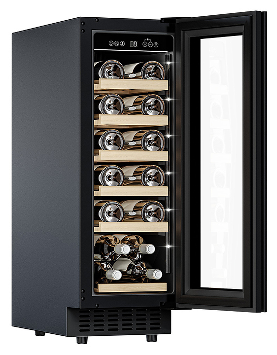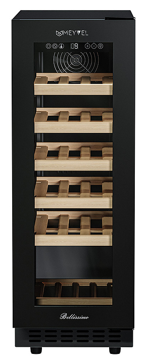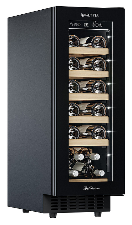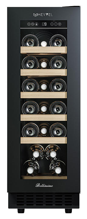 Винный шкаф MEYVEL MV19NH-KBT1 предназначен для демонстрации, хранения и создания оптимальных условий для сохранения всех вкусовых свойств вина в бутылках на предприятиях общественного питания, торговли, в барах, ресторанах, специализированных магазинах, частных домах или квартирах. Модель оснащена сенсорной панелью управления, электронным термостатом и внутренней светодиодной подсветкой. Корпус выполнен из окрашенной в черный цвет стали, дверь - из тройного стекла с УФ защитой с черной рамкой, полки - из массива бука.