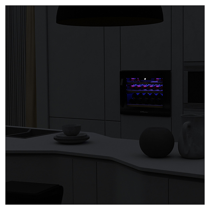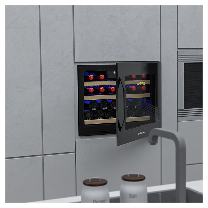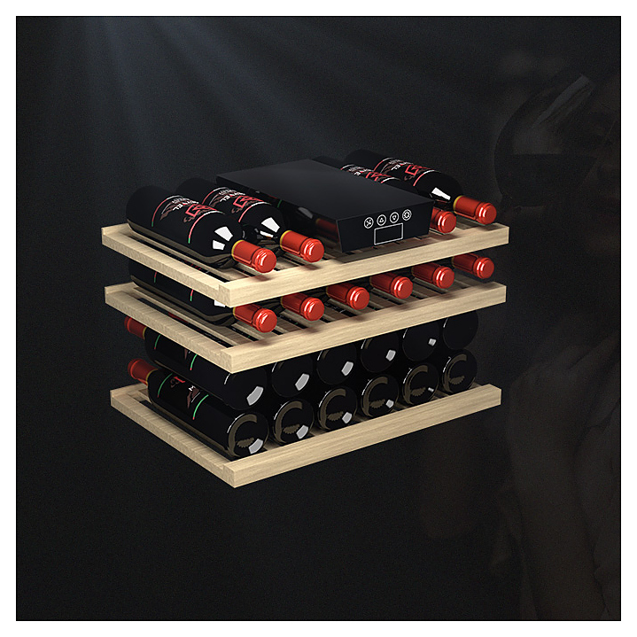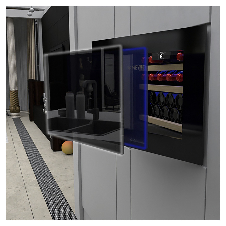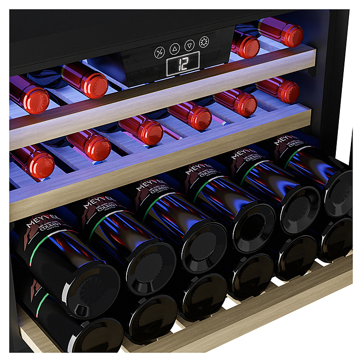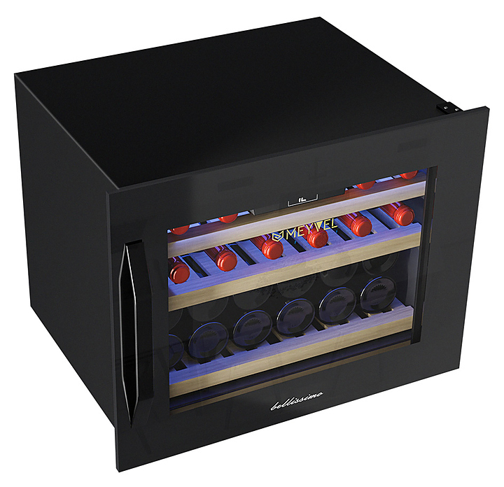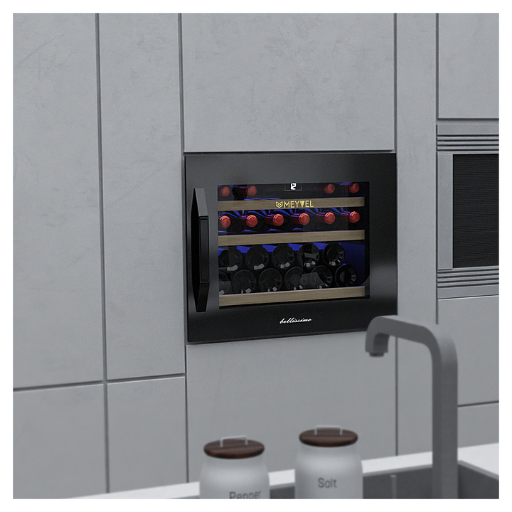 Винный шкаф MEYVEL MV22-KBB1 предназначен для демонстрации, хранения и создания оптимальных условий для сохранения всех вкусовых свойств вина в бутылках на предприятиях общественного питания, торговли, в барах, ресторанах, специализированных магазинах, частных домах или квартирах. Модель оснащена сенсорной панелью управления, электронным термостатом и внутренней светодиодной подсветкой. Корпус и дверная ручка выполнены из окрашенной в черный цвет стали, дверь - из двойного стекла с УФ защитой с черной рамкой, полки - из массива бука.