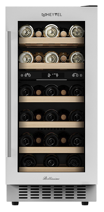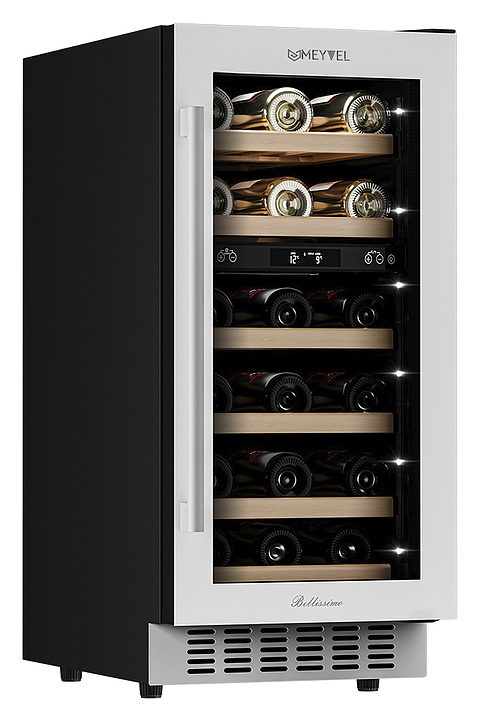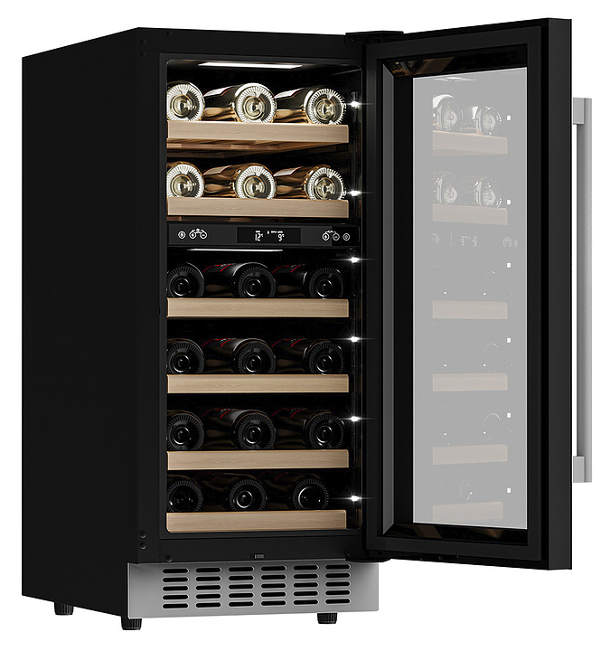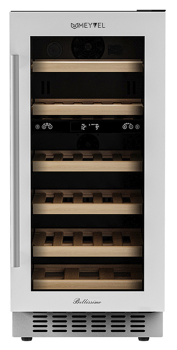 Винный шкаф MEYVEL MV28-KWT2 предназначен для демонстрации, хранения и создания оптимальных условий для сохранения всех вкусовых свойств вина в бутылках на предприятиях общественного питания, торговли, в барах, ресторанах, специализированных магазинах, частных домах или квартирах. Модель оснащена сенсорной панелью управления, 2 электронными термостатами и внутренней белой светодиодной подсветкой. Корпус выполнен из окрашенной в черный цвет стали, дверь - из тройного стекла с УФ защитой с белой рамкой, полки - из массива бука.