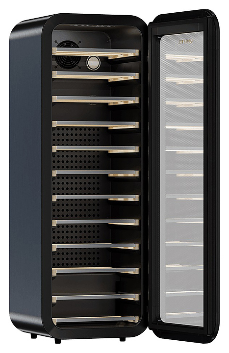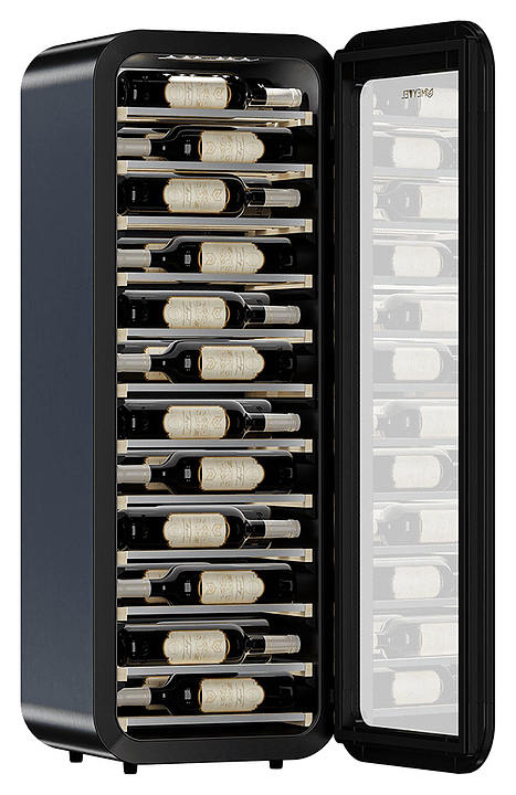 Винный шкаф MEYVEL MV34-KBF1 предназначен для демонстрации, хранения и создания оптимальных условий для сохранения всех вкусовых свойств вина в бутылках на предприятиях общественного питания, торговли, в барах, ресторанах, специализированных магазинах, частных домах или квартирах. Модель оснащена сенсорной панелью управления, электронным термостатом, утопленной ручкой и белой светодиодной подсветкой. Корпус выполнен из окрашенной в черный цвет стали, дверь - из тройного стекла с защитой от ультрафиолетовых лучей, полки - из массива бука.