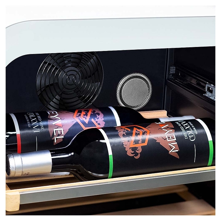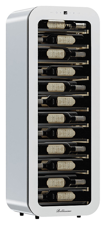 Винный шкаф MEYVEL MV34-KWF1 предназначен для демонстрации, хранения и создания оптимальных условий для сохранения всех вкусовых свойств вина в бутылках на предприятиях общественного питания, торговли, в барах, ресторанах, специализированных магазинах, частных домах или квартирах. Модель оснащена сенсорной панелью управления, электронным термостатом, утопленной ручкой и белой светодиодной подсветкой. Корпус выполнен из окрашенной в белый цвет стали, дверь - из тройного стекла с защитой от ультрафиолетовых лучей, полки - из массива бука.