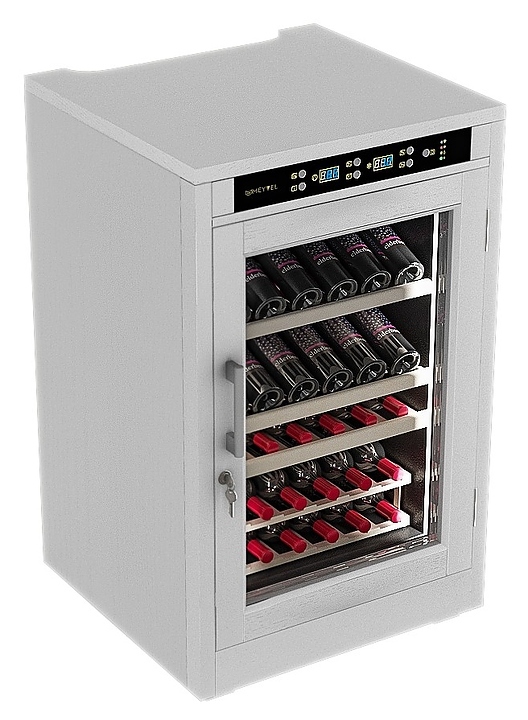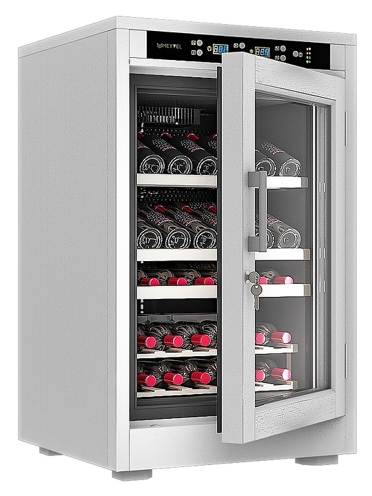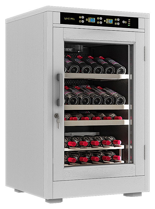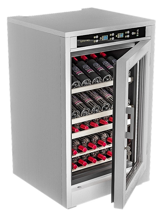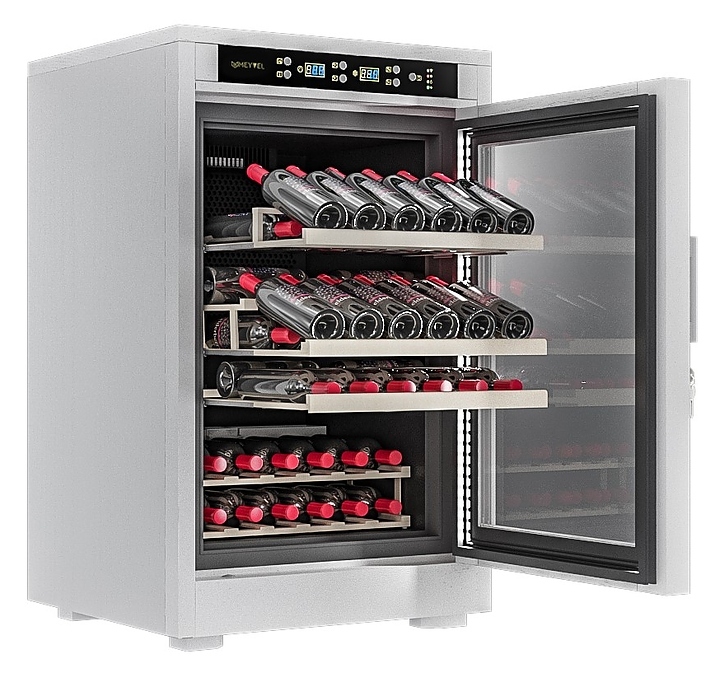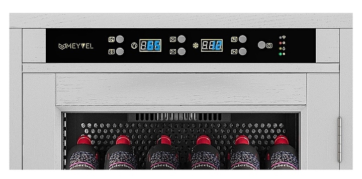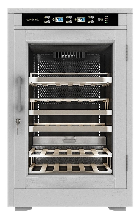 Винный шкаф MEYVEL MV46-WW1-M предназначен для демонстрации, хранения и создания оптимальных условий для сохранения всех вкусовых свойств вина в бутылках на предприятиях общественного питания, торговли, в барах, ресторанах, специализированных магазинах, частных домах или квартирах. Модель оснащена сенсорной панелью управления, электронным термостатом и светодиодной подсветкой. Корпус выполнен из обшитой деревом стали, дверь - из деревянной рамы и двойного стекла с защитой от ультрафиолетовых лучей, полки - из массива бука.