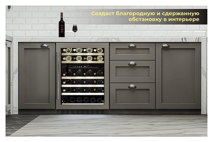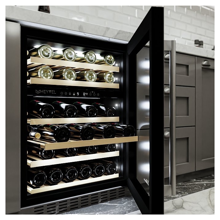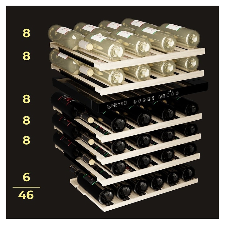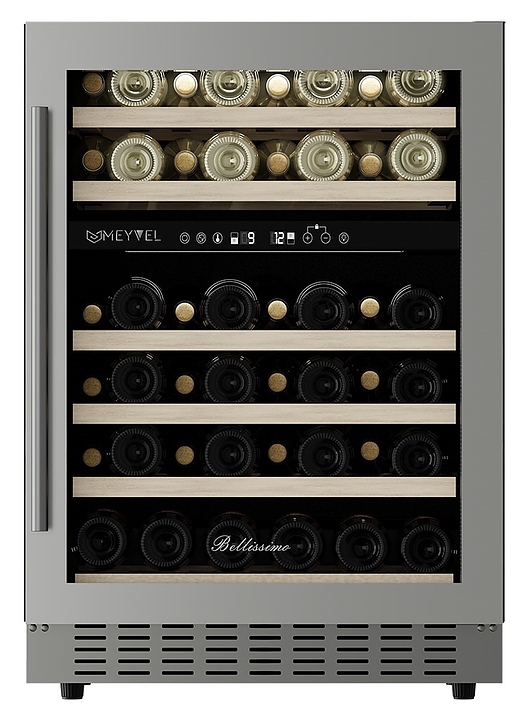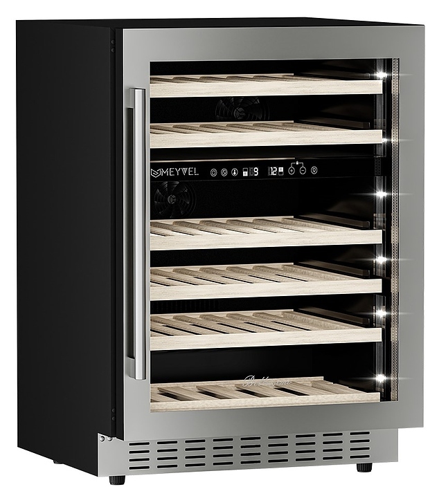Винный шкаф MEYVEL MV46PRO-KST2 предназначен для демонстрации, хранения и создания оптимальных условий для сохранения всех вкусовых свойств вина в бутылках на предприятиях общественного питания, торговли, в барах, ресторанах, специализированных магазинах, частных домах или квартирах. Модель оснащена сенсорной панелью управления, электронным термостатом, белым демонстрационным и панорманым освещением. Корпус и ручка выполнены из стали, дверь - из стальной рамы и тройного стекла с защитой от ультрафиолетовых лучей, полки - из массива бука.