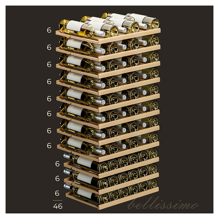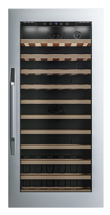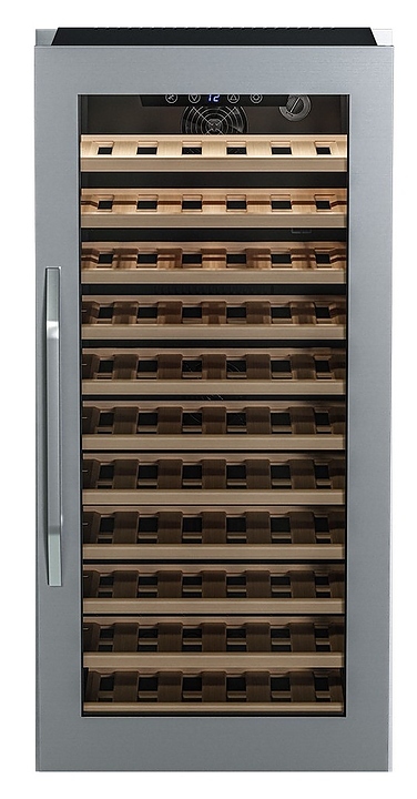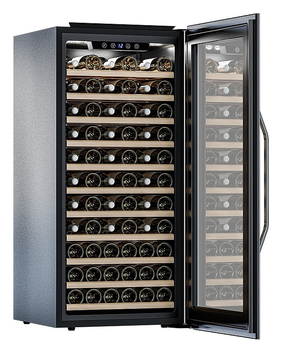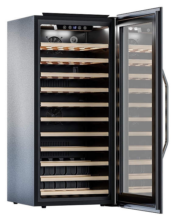 Винный шкаф MEYVEL MV66-KSB1 предназначен для демонстрации, хранения и создания оптимальных условий для сохранения всех вкусовых свойств вина в бутылках на предприятиях общественного питания, торговли, в барах, ресторанах, специализированных магазинах, частных домах или квартирах. Модель оснащена удобным электронным управлением, белым панорамным освещением, угольным фильтром и регулируемыми по высоте ножками. Корпус и дверная ручка выполнены из стали, дверь - из двойного стекла с УФ защитой со стальной окантовкой, полки - из массива бука.