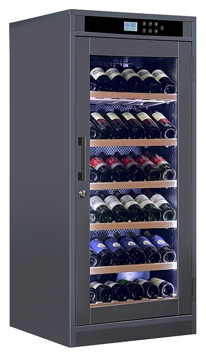 Винный шкаф MEYVEL MV69-WM1-M (Grey Quartz) серии Modern предназначен для хранения при оптимальных условиях бутилированного вина различных сортов в барах, ресторанах, специализированных магазинах, подсобных складских помещениях, гостиницах, а также домашних условиях. Модель оснащена монотемпературной холодильной камерой, распашной дверью на внешних петлях, прозрачным обзорным остеклением, кабелем питания с вилкой, внешней сенсорной панелью управления и жидкокристаллическим дисплеем индикации с подсветкой. Корпус имеет покрытие под дерево с поверхностью оттенка серый кварц, фурнитура – из металла, полки – из массива древесины.