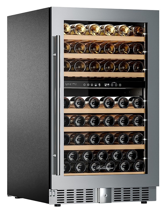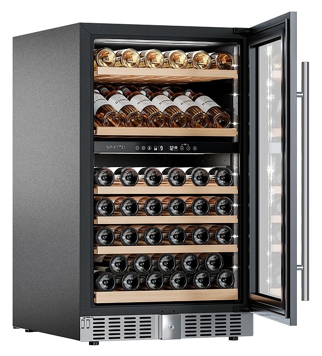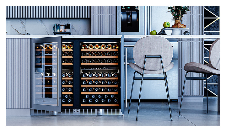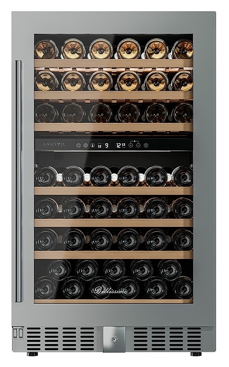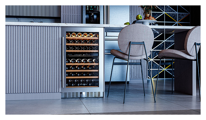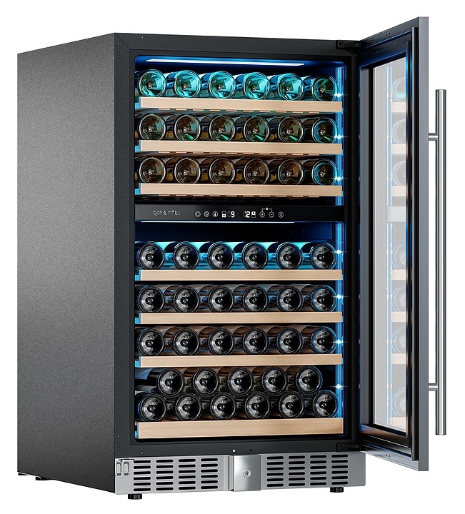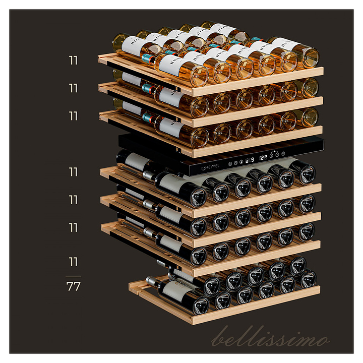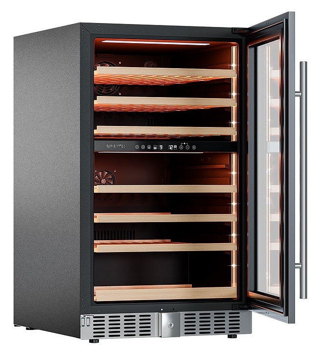 Винный шкаф MEYVEL MV77PRO-KST2 предназначен для демонстрации, хранения и создания оптимальных условий для сохранения всех вкусовых свойств вина в бутылках на предприятиях общественного питания, торговли, в барах, ресторанах, специализированных магазинах, частных домах или квартирах. Модель оснащена сенсорной панелью управления, электронным термостатом, понорамной светодиодной подсветкой, замком, угольным фильтром, 7 выкатными полками и регулируемыми по высоте ножками. Корпус выполнен из окрашенной в черный цвет стали, дверь - из тройного стеклопакета с УФ защитой, полки - из массива бука.