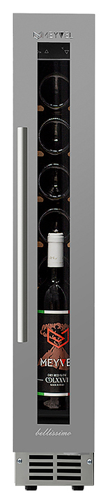 Винный шкаф MEYVEL MV8-KST1 предназначен для демонстрации, хранения и создания оптимальных условий для сохранения всех вкусовых свойств вина в бутылках на предприятиях общественного питания, торговли, в барах, ресторанах, специализированных магазинах, частных домах или квартирах. Модель оснащена сенсорной панелью управления, электронным термостатом и синей светодиодной подсветкой. Корпус и ручка выполнены из стали, дверь - из бесшовной стальной рамы и двойного стекла с защитой от ультрафиолетовых лучей, полки - из массива бука и дуба, ручка - из нержавеющей стали.