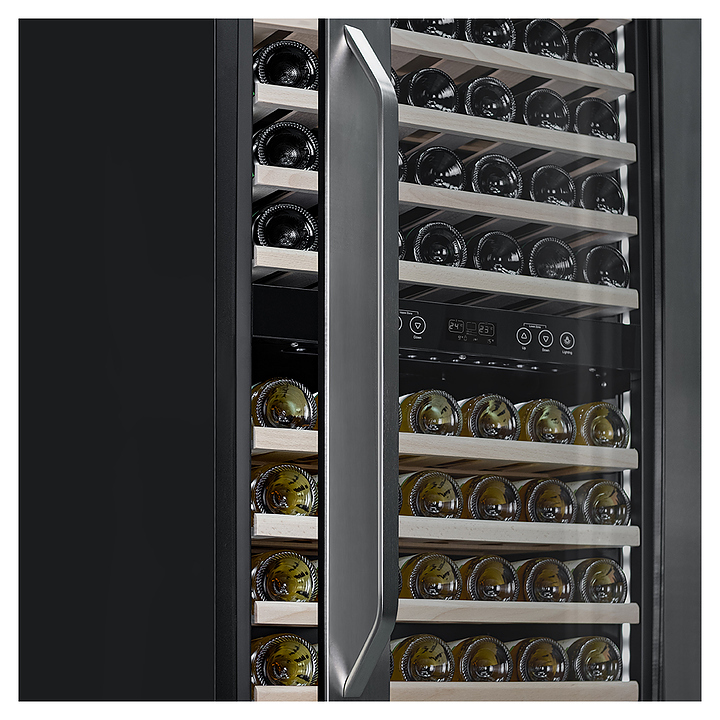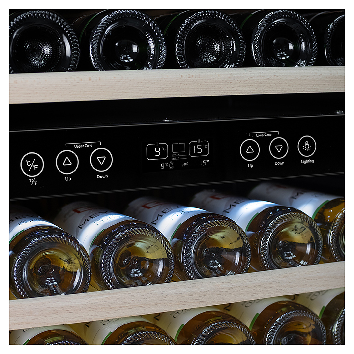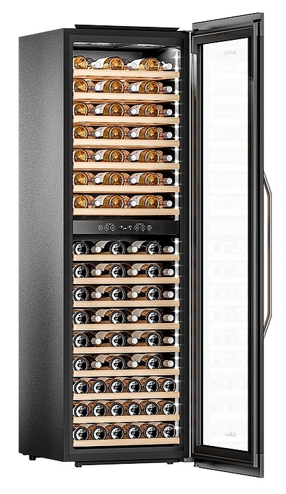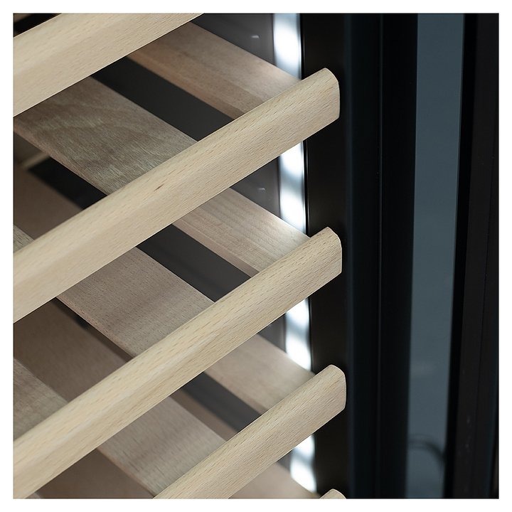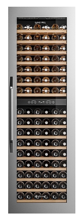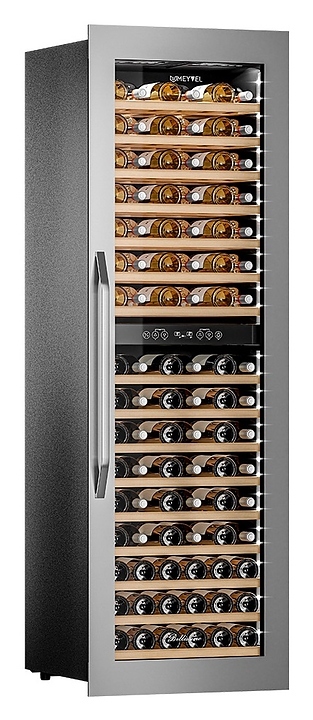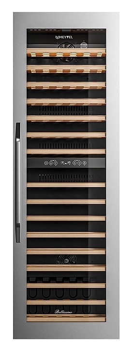 Винный шкаф MEYVEL MV83-KBB2 предназначен для демонстрации, хранения и создания оптимальных условий для сохранения всех вкусовых свойств вина в бутылках на предприятиях общественного питания, торговли, в барах, ресторанах, специализированных магазинах, частных домах или квартирах. Модель оснащена сенсорной панелью управления, электронным термостатом и внутренней белой светодиодной подсветкой. Корпус и дверная ручка выполнены из окрашенной стали, дверь - из тройного стекла с УФ защитой ссребристой рамкой, полки - из массива бука.