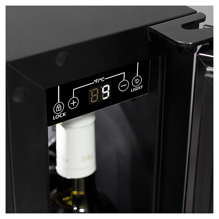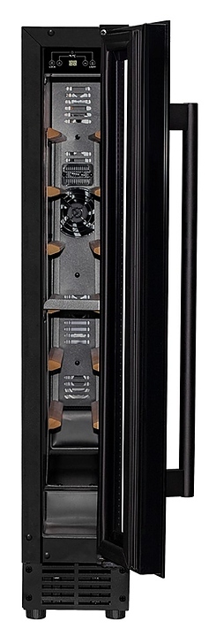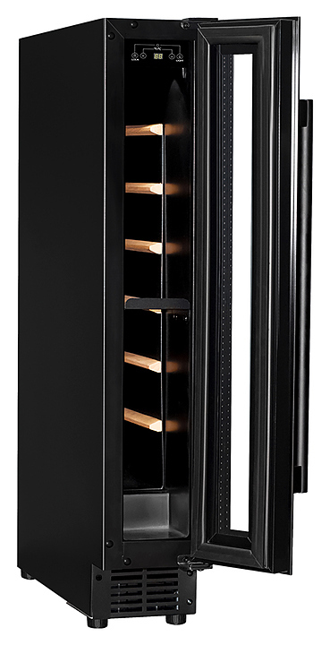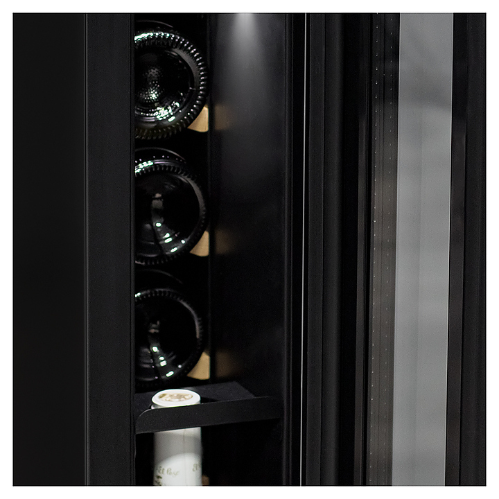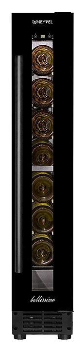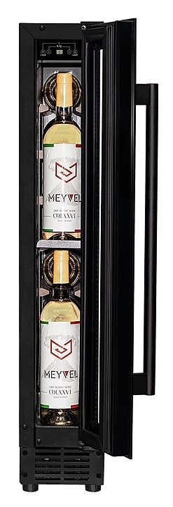 Винный шкаф MEYVEL MV9-KBT1 предназначен для демонстрации, хранения и создания оптимальных условий для сохранения всех вкусовых свойств вина в бутылках на предприятиях общественного питания, торговли, в барах, ресторанах, специализированных магазинах, частных домах или квартирах. Модель оснащена сенсорной панелью управления, электронным термостатом и внутренней светодиодной подсветкой. Корпус и дверная ручка выполнены из окрашенной в черный цвет стали, дверь - из тройного стекла с УФ защитой с черной рамкой, полки - из массива бука.