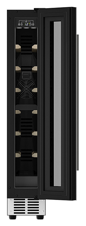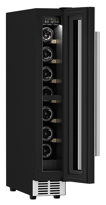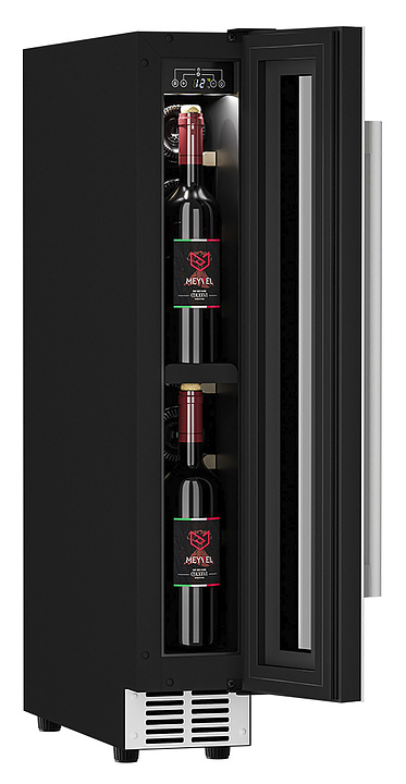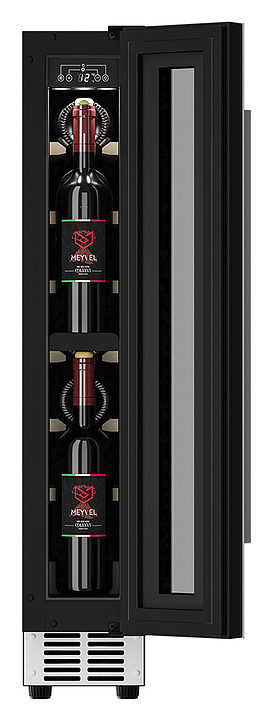 Винный шкаф MEYVEL MV9-KWT1 предназначен для демонстрации, хранения и создания оптимальных условий для сохранения всех вкусовых свойств вина в бутылках на предприятиях общественного питания, торговли, в барах, ресторанах, специализированных магазинах, частных домах или квартирах. Модель оснащена сенсорной панелью управления, электронным термостатом и внутренней светодиодной подсветкой. Корпус выполнен из окрашенной в черный цвет стали, дверь - из тройного стекла с УФ защитой с белой рамкой, полки - из массива бука.