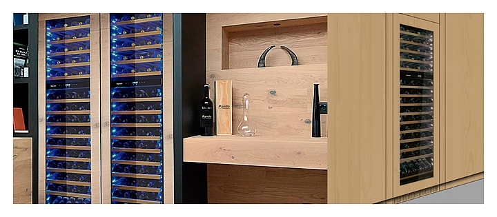 Винный шкаф Pando PVMAP 178-112 PAL предназначен для хранения при оптимальных условиях и предпродажной демонстрации бутилированного вина различных сортов в барах, ресторанах, специализированных магазинах, подсобных складских помещениях, а также домашних условиях. Модель оснащена холодильной камерой с 2 температурными зонами, левосторонней распашной дверью, внутренней сенсорной панелью управления и светодиодными цифровыми дисплеями с голубой подсветкой индикации. Корпус и рама двери выполнены из стали с антикоррозийным покрытием, остекление двери – из закаленного стекла с прозрачной дымчатой тонировкой, внутренняя облицовка камеры черного цвета, полки – из массива буковой древесины.
