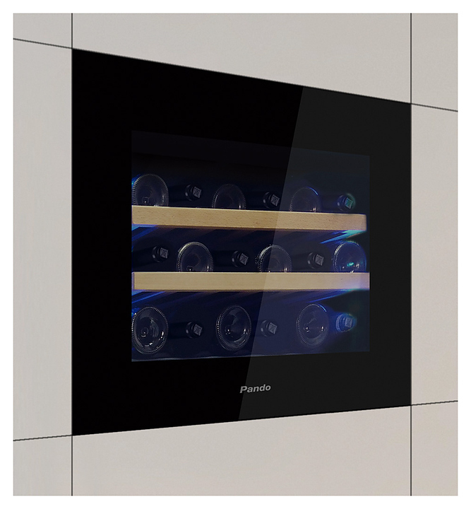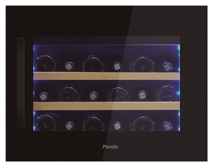 Винный шкаф Pando PVMAV 45-16 CRR W предназначен для хранения при оптимальных условиях и предпродажной демонстрации бутилированного вина различных сортов в барах, ресторанах, специализированных магазинах, подсобных складских помещениях, а также домашних условиях. Модель оснащена монотемпературной холодильной камерой с правосторонней распашной дверью, вертикальной рукояткой, внутренней сенсорной панелью управления и светодиодным цифровым дисплеем с белой подсветкой индикации. Корпус выполнен из стали с антикоррозийным покрытием черного цвета, дверь с полным фронтальным остеклением без винтового крепежа из закаленного стекла с прозрачной дымчатой тонировкой, рукоятка – из анодированного алюминия с черной поверхностью, внутренняя облицовка камеры черного цвета, полки – из массива буковой древесины.