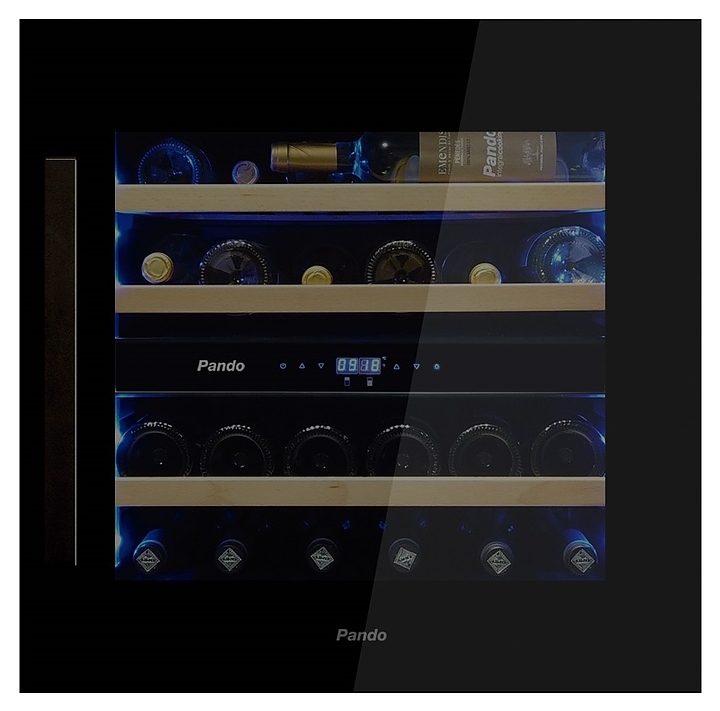 Винный шкаф Pando PVMAV 60-25 CRL предназначен для хранения при оптимальных условиях и предпродажной демонстрации бутилированного вина различных сортов в барах, ресторанах, специализированных магазинах, подсобных складских помещениях, а также домашних условиях. Модель оснащена холодильной камерой с 2 температурными зонами, левосторонней распашной дверью, вертикальной рукояткой, внутренней сенсорной панелью управления и светодиодными цифровыми дисплеями с голубой подсветкой индикации. Корпус выполнен из стали с антикоррозийным покрытием черного цвета, дверь с полным фронтальным остеклением без винтового крепежа из закаленного стекла с прозрачной дымчатой тонировкой, рукоятка – из анодированного алюминия с черной поверхностью, внутренняя облицовка камеры черного цвета, полки – из массива буковой древесины.
