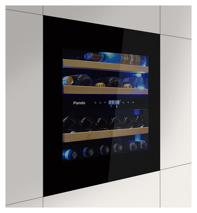 Винный шкаф Pando PVMAVP 60-25 CRL предназначен для хранения при оптимальных условиях и предпродажной демонстрации бутилированного вина различных сортов в барах, ресторанах, специализированных магазинах, подсобных складских помещениях, а также домашних условиях. Модель оснащена холодильной камерой с 2 температурными зонами, левосторонней распашной дверью, внутренней сенсорной панелью управления и светодиодными цифровыми дисплеями с голубой подсветкой индикации. Корпус выполнен из стали с антикоррозийным покрытием черного цвета, дверь с полным фронтальным остеклением без винтового крепежа из закаленного стекла с прозрачной дымчатой тонировкой, внутренняя облицовка камеры черного цвета, полки – из массива буковой древесины.