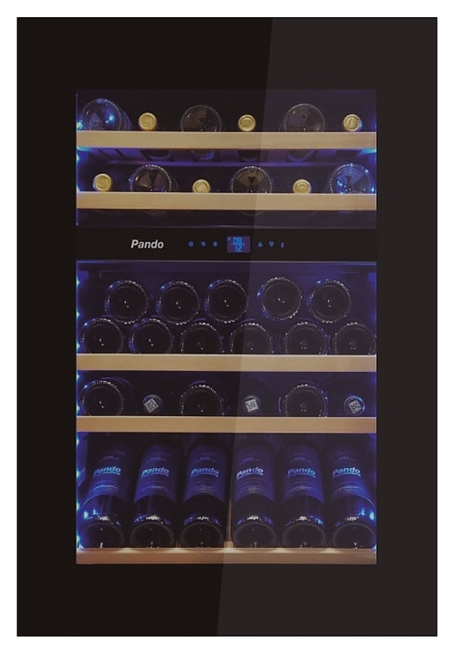 Винный шкаф Pando PVMAVP 88-49 CRR предназначен для хранения при оптимальных условиях и предпродажной демонстрации бутилированного вина различных сортов в барах, ресторанах, специализированных магазинах, подсобных складских помещениях, а также домашних условиях. Модель оснащена холодильной камерой с 2 температурными зонами, правосторонней распашной дверью, внутренней сенсорной панелью управления и светодиодными цифровыми дисплеями с голубой подсветкой индикации. Корпус выполнен из стали с антикоррозийным покрытием черного цвета, дверь с полным фронтальным остеклением без винтового крепежа из закаленного стекла с прозрачной дымчатой тонировкой, внутренняя облицовка камеры черного цвета, полки – из массива буковой древесины.