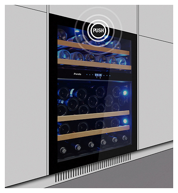 Винный шкаф Pando PVMBP 60-45 CRL предназначен для хранения при оптимальных условиях и предпродажной демонстрации бутилированного вина различных сортов в барах, ресторанах, специализированных магазинах, подсобных складских помещениях, а также домашних условиях. Модель оснащена холодильной камерой с 2 температурными зонами, левосторонней распашной дверью, внутренней сенсорной панелью управления и светодиодными цифровыми дисплеями с голубой подсветкой индикации. Корпус выполнен из стали с антикоррозийным покрытием черного цвета, дверь с полным фронтальным остеклением без винтового крепежа из закаленного стекла с прозрачной дымчатой тонировкой, внутренняя облицовка камеры черного цвета, полки – из массива буковой древесины.