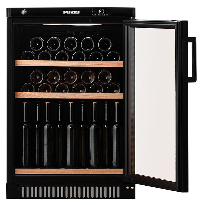 Винный шкаф POZIS ШВ-39 создает особые условия для хранения вин, сохраняя их первозданный вид, вкус и аромат. Тонированный стеклопакет на двери предотвращает проникновение солнечных лучей, ухудшающих качество вина, особая циркуляция воздуха поддерживает нужный уровень влажности, а деревянные полки снижают уровень вибрации от компрессора. Для удобства пользования цифровой дисплей, отображающий температуру, располагается над дверью в зоне постоянной видимости.