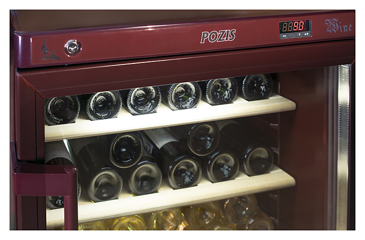Винный шкаф POZIS ШВ-52 создает особые условия для хранения вин, сохраняя их первозданный вид, вкус и аромат. Тонированный стеклопакет на двери предотвращает проникновение солнечных лучей, ухудшающих качество вина, особая циркуляция воздуха поддерживает нужный уровень влажности, а деревянные полки снижают уровень вибрации от компрессора. Для удобства пользования цифровой дисплей, отображающий температуру, располагается над дверью в зоне постоянной видимости.